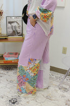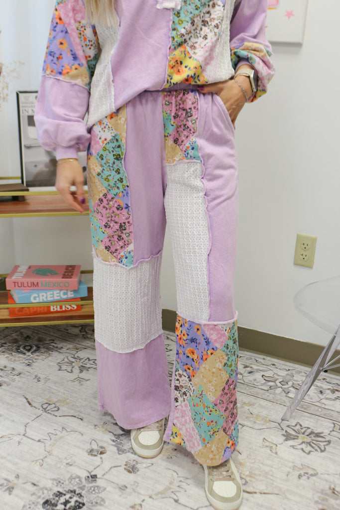 Embrace your inner free spirit with the Boho Beauty Lavender Patchwork Wide Leg Pants. Designed for the fashionista who values both individuality and comfort, these pants feature a stunning mix of floral prints, soft lavender panels, and textured waffle-knit accents. Whether you're heading to a festival or enjoying a relaxed weekend brunch, these wide-leg trousers offer a unique, handcrafted look that ensures you stand out from the crowd.