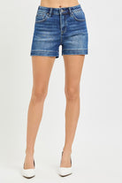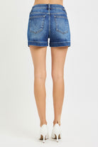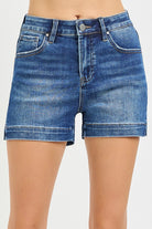 Risen Dark Hise Rise Side Slit Basic Denim Shorts