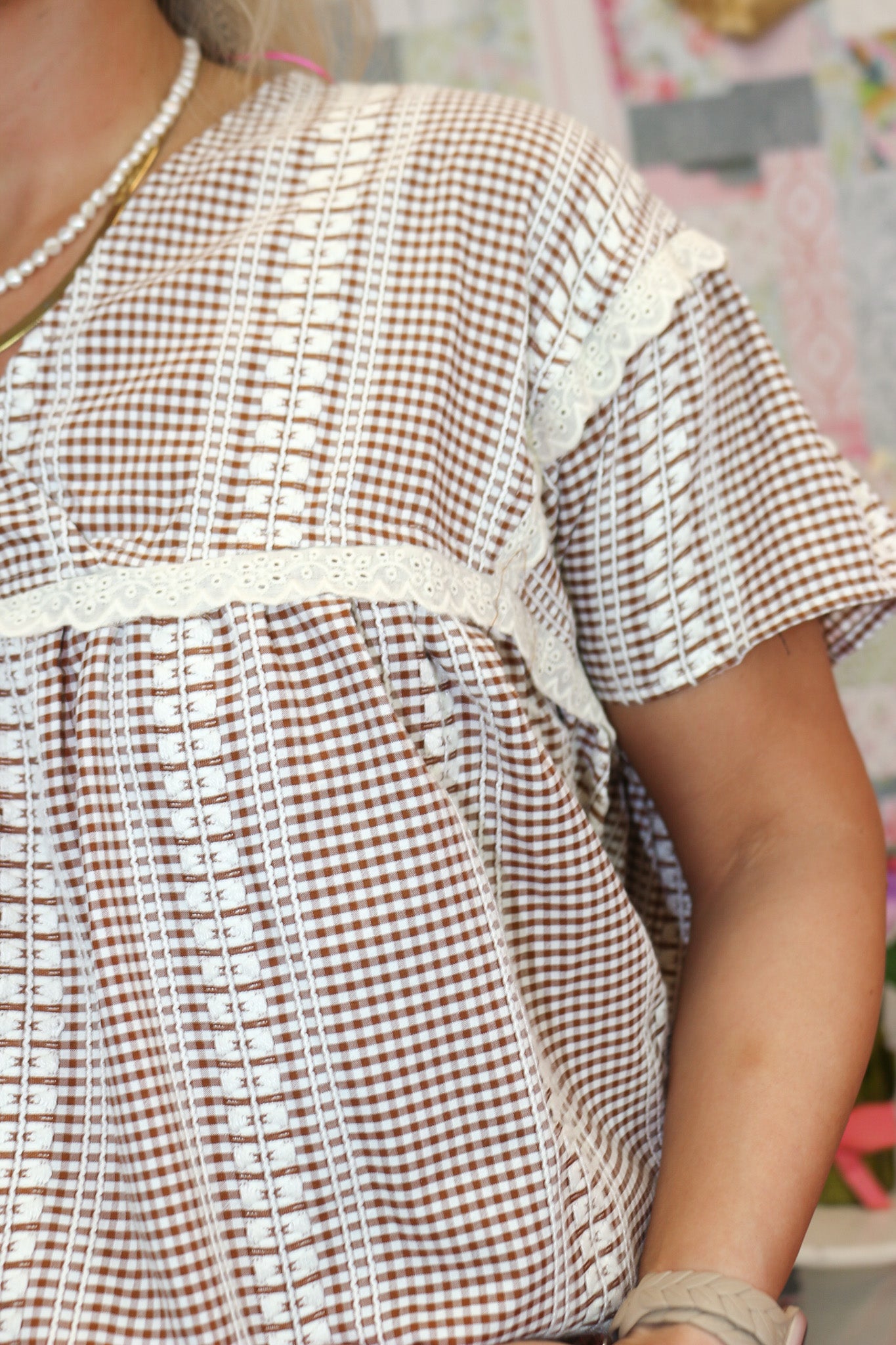 Super Easy Going Mocha Gingham Top