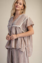 Effortlessly charming, this relaxed babydoll top features an all-over check pattern that brings vintage-inspired appeal to your everyday wardrobe. The flattering V neckline pairs beautifully with delicate embroidered lace trim, adding a touch of romantic detail. Perfect for layering or wearing solo, this piece captures that coveted retro aesthetic with modern comfort and ease.