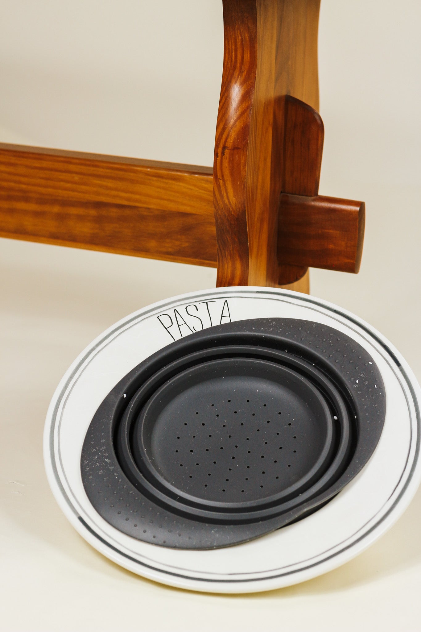 Leftovers are for quitters with our Pasta Bowl and Colander Set. The two piece set comes with a hand-painted ceramic serving bowl. The serving bowl features the sentiment "Pasta". The serving bowl also comes with a collapsible silicone colander that easily nests inside the bowl.