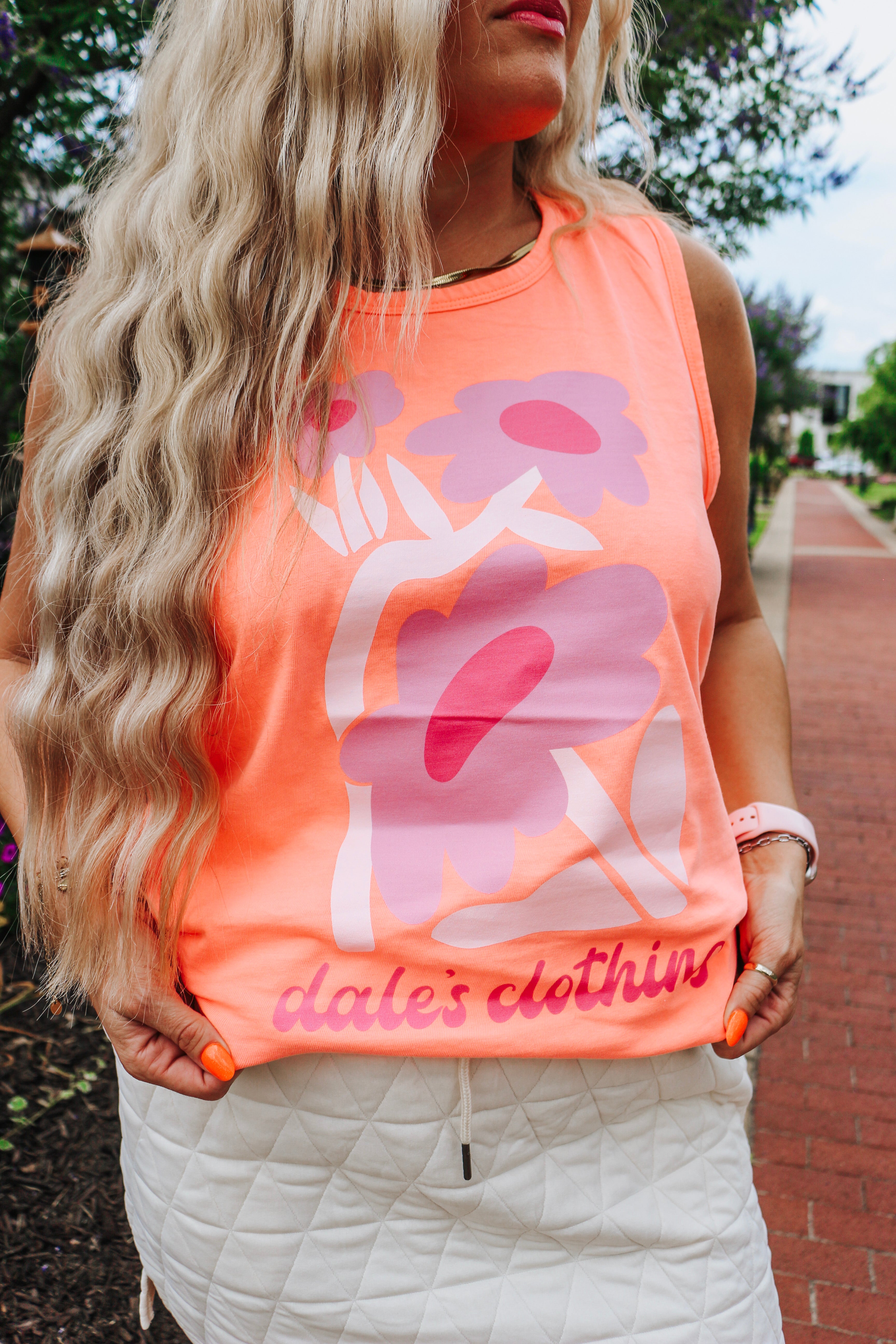 This vibrant Dales Funky Flower Orange Tank top will make you stand out with its funky flower design! The perfect addition to any summer outfit, this tank will keep you cool and stylish. Embrace your unique sense of style with this eye-catching tank.