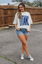Say hello to the new Titans Ivory Graphic Tee! This must-have shirt features bold blue letters that will make you stand out in any crowd. Show off your love for the Titans and elevate your style with this eye-catching graphic tee. Hurry and get yours today!