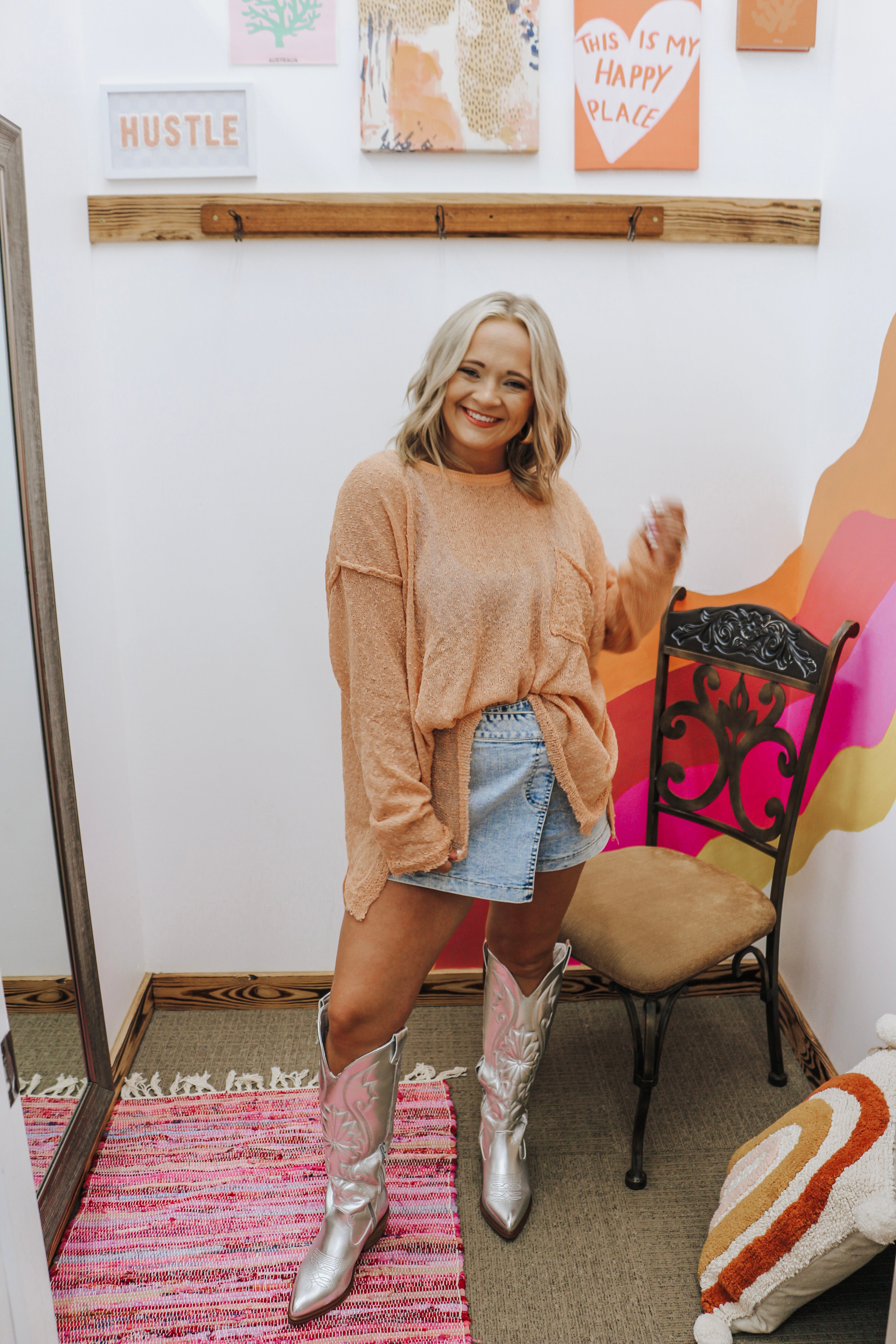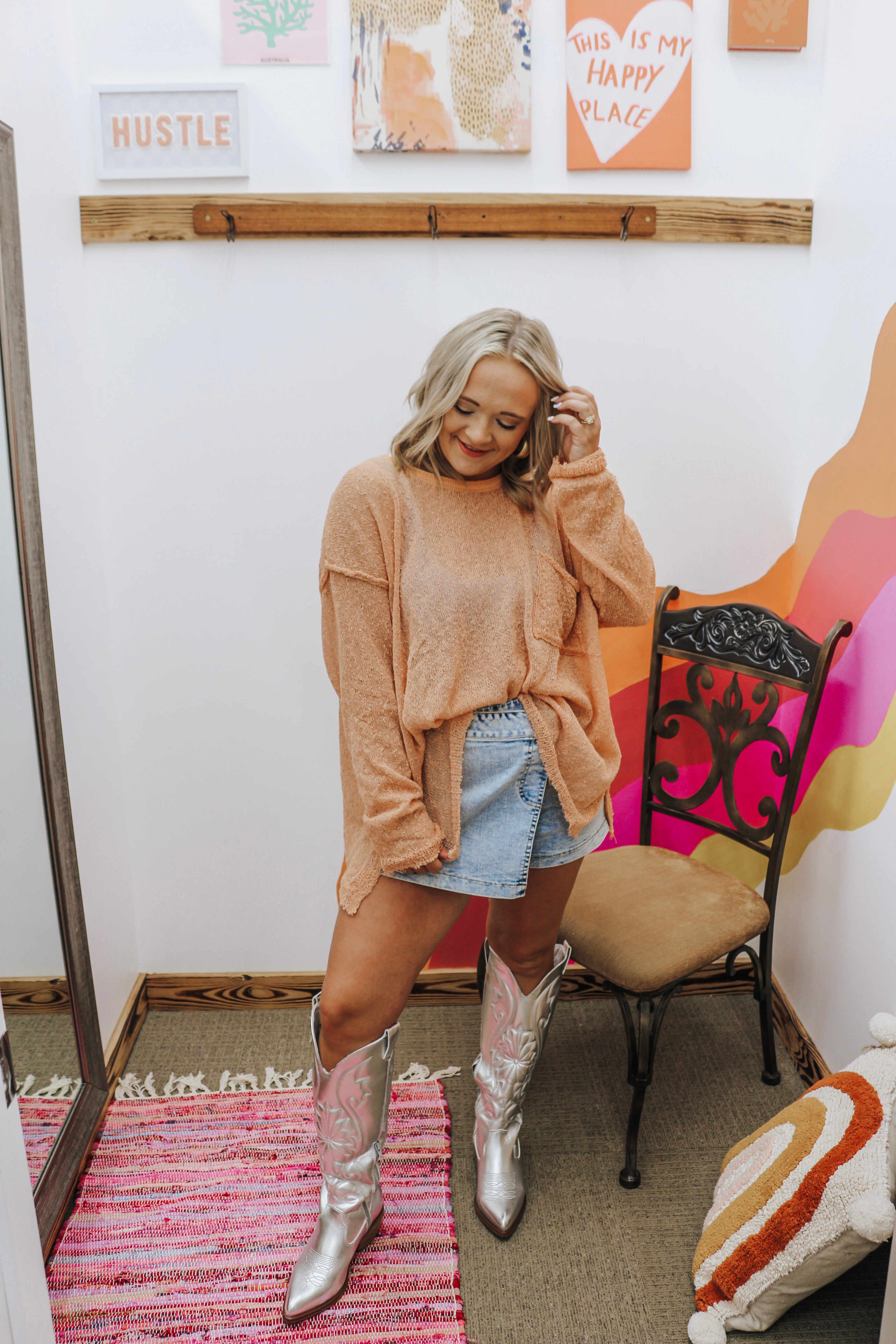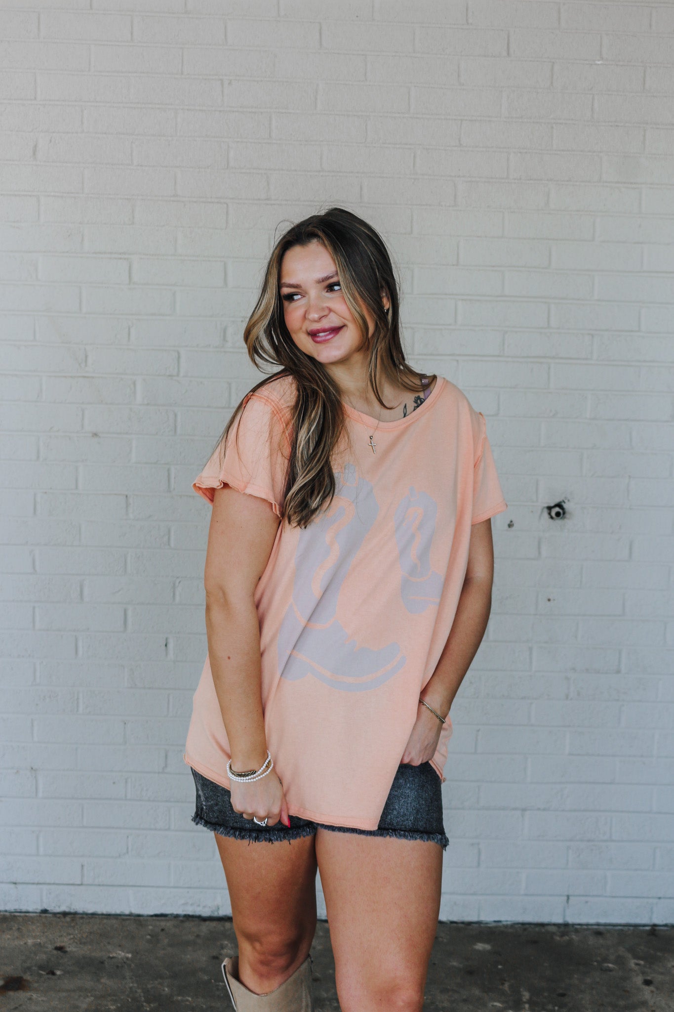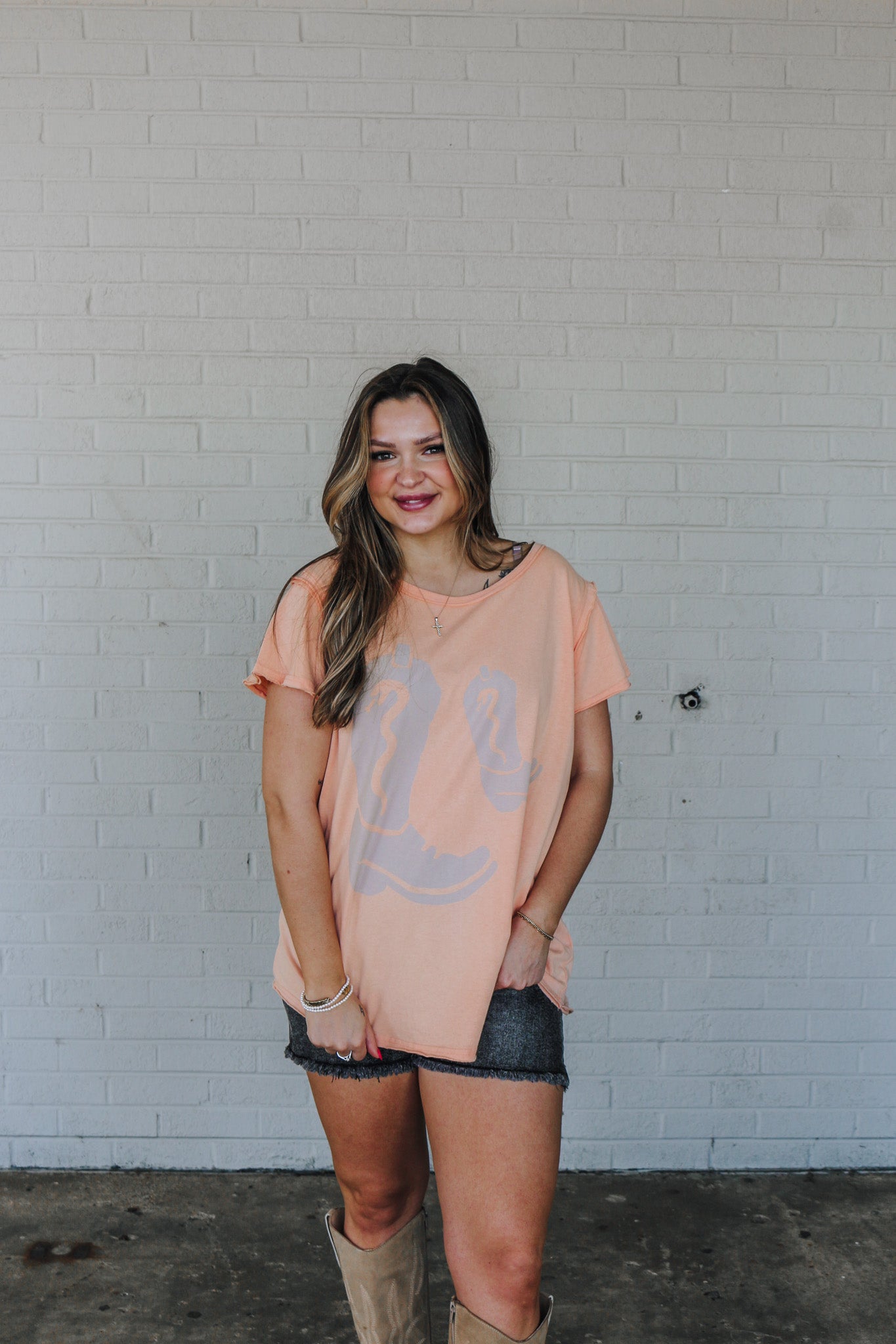 Boot Wearing Girl Cantaloupe Orange Graphic Tee