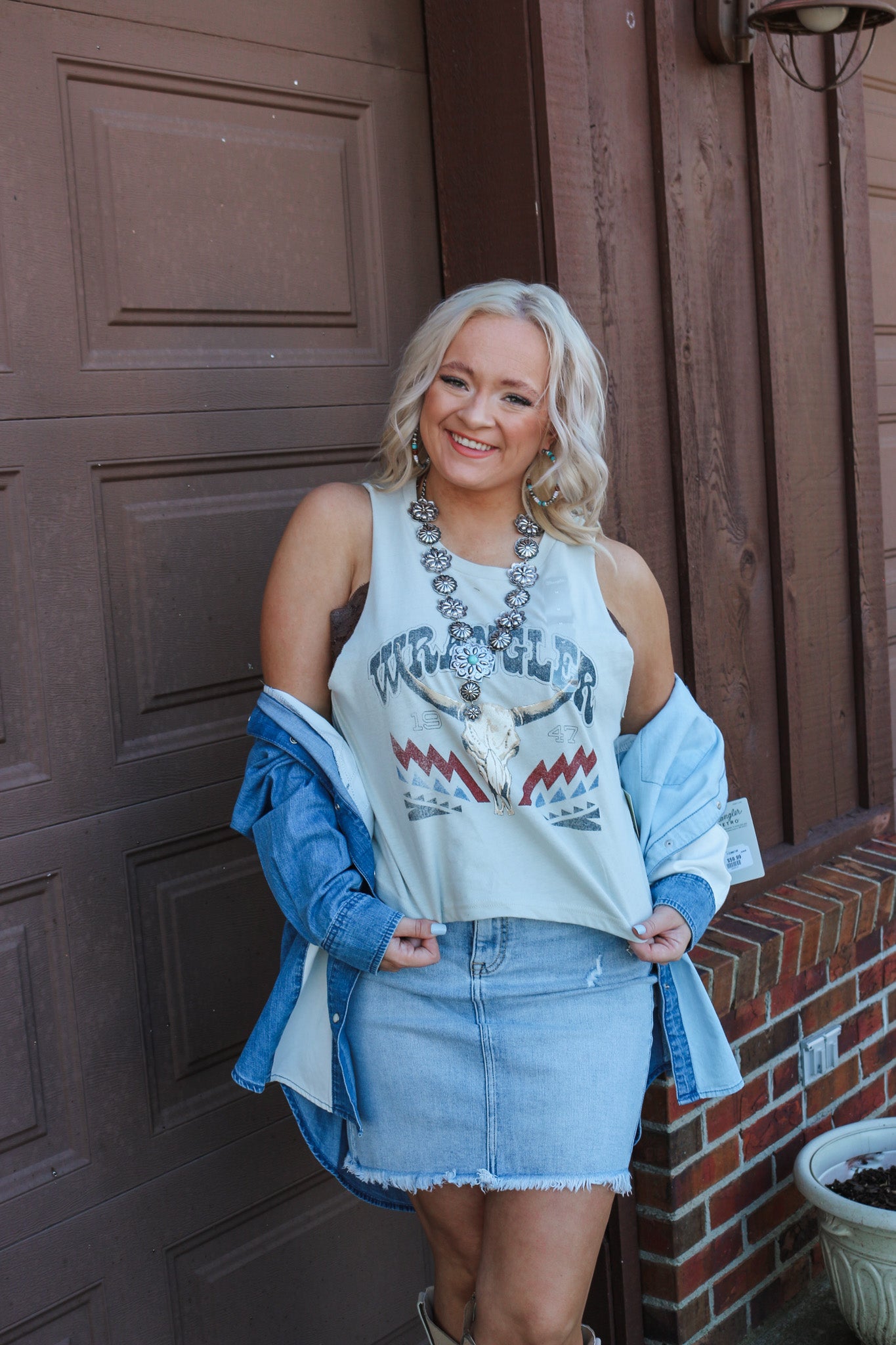 Women's Wrangler Off White estival Crop Graphic Tank Top