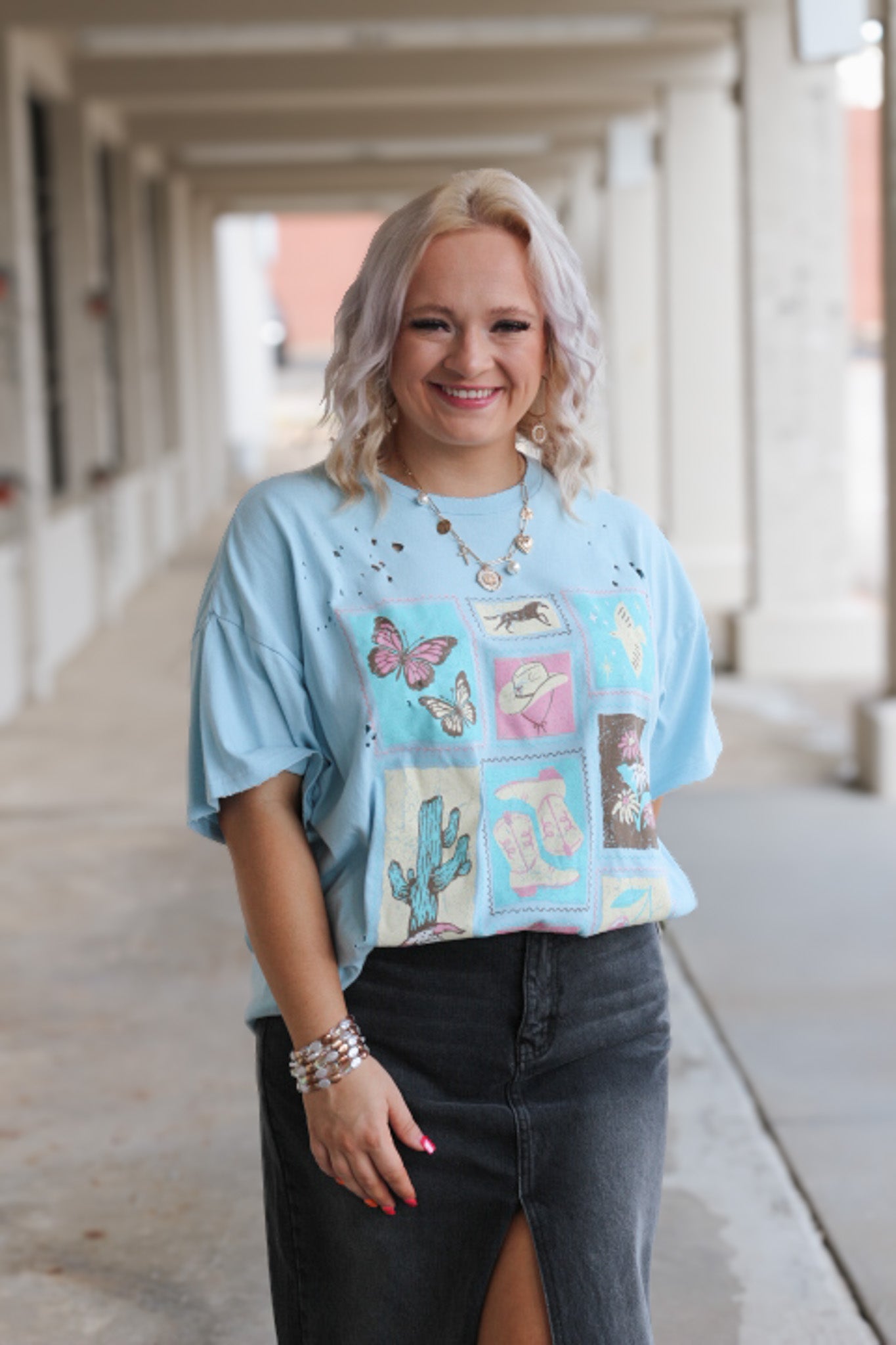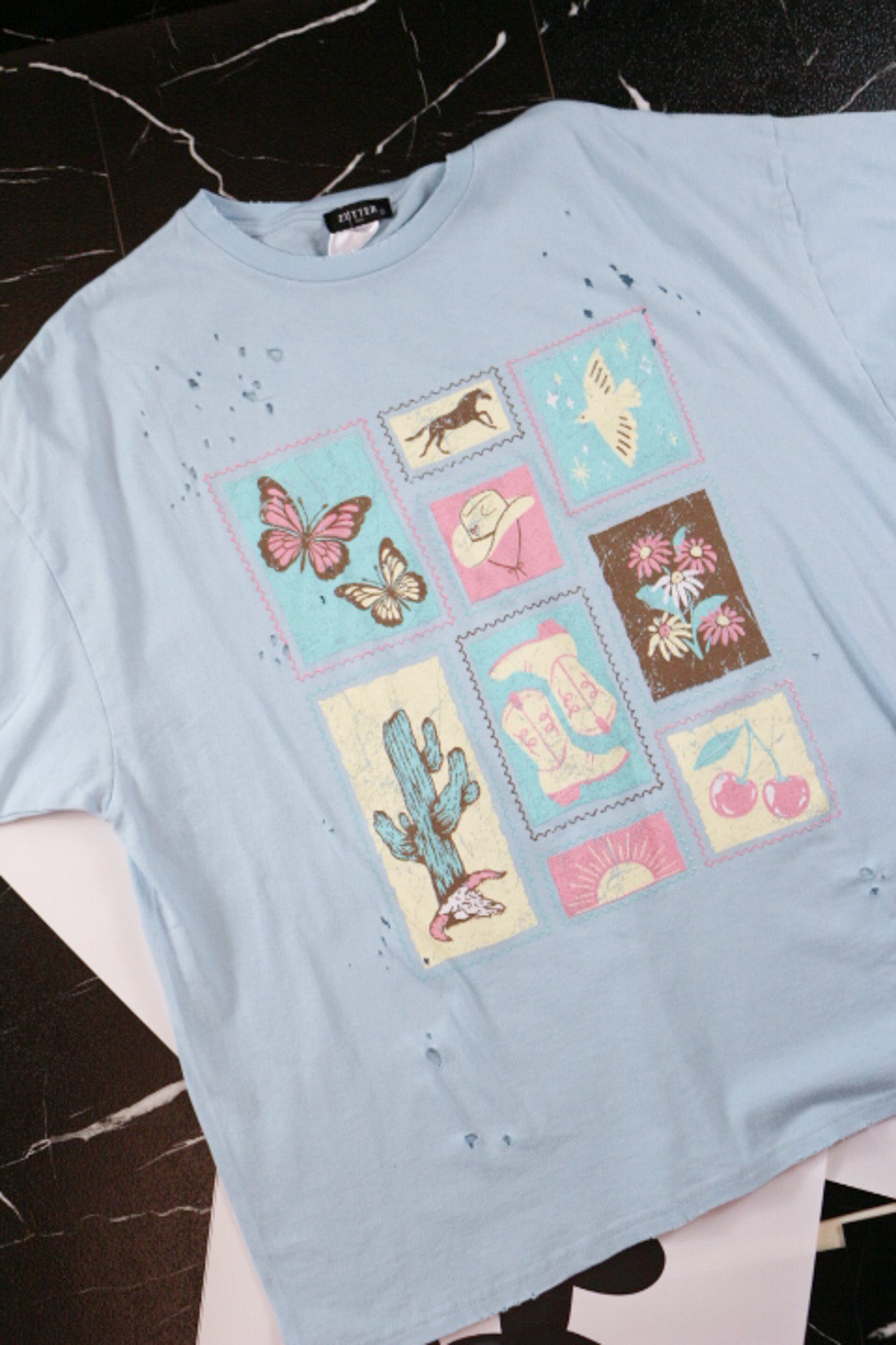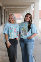 Western Stamps Light Blue Oversized Graphic Tee