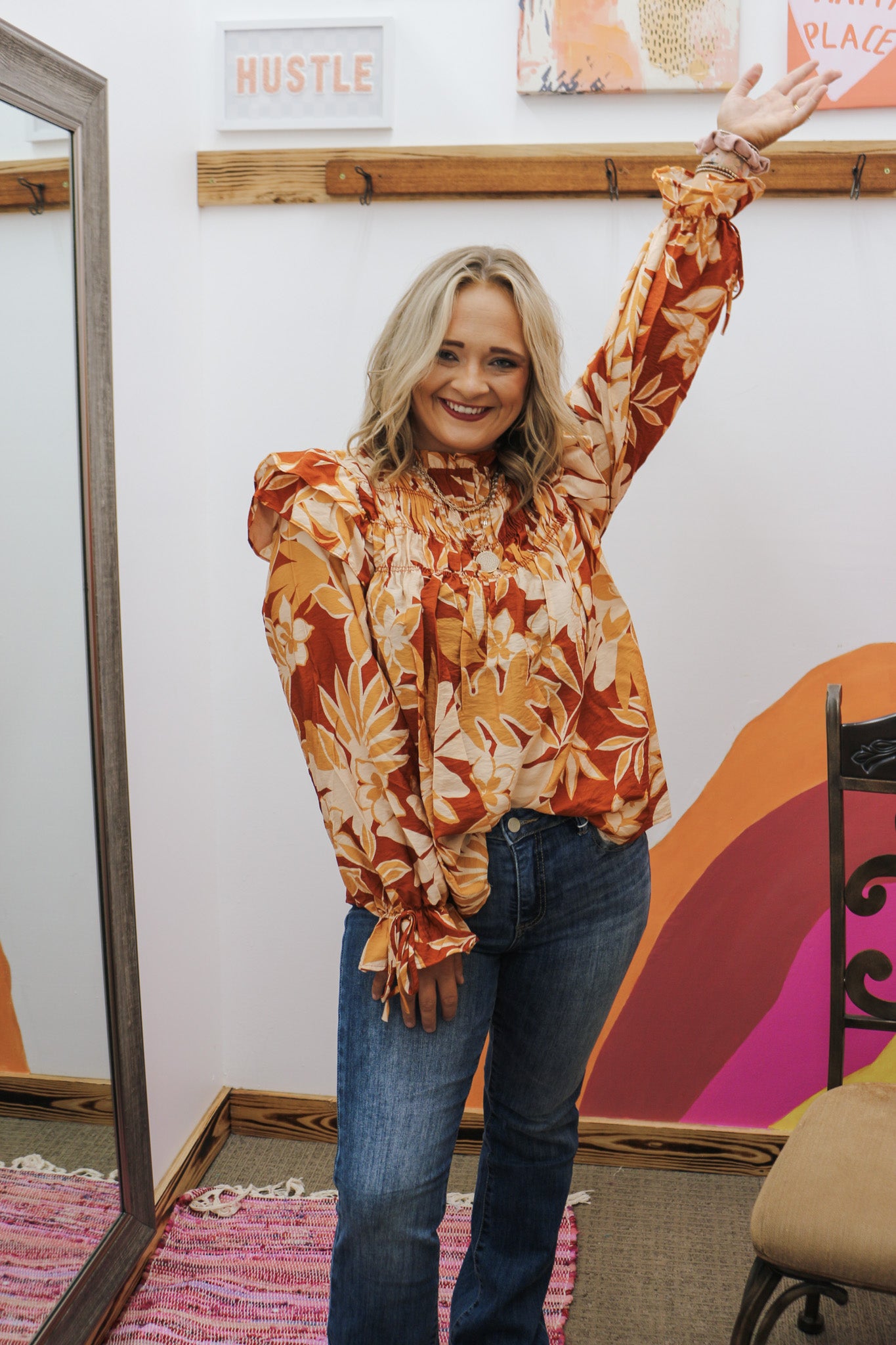 The Way Things Go Rust Floral Blouse