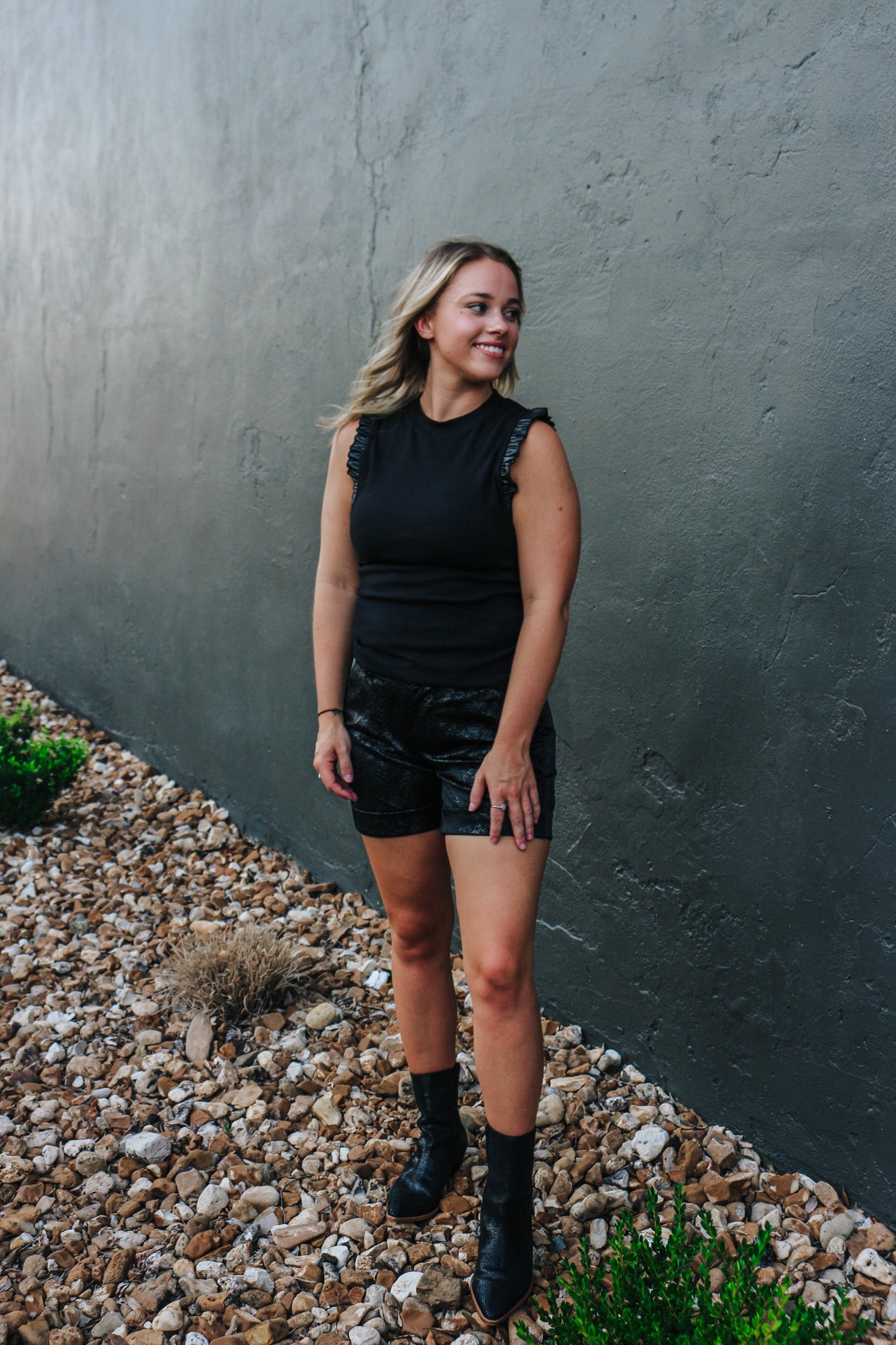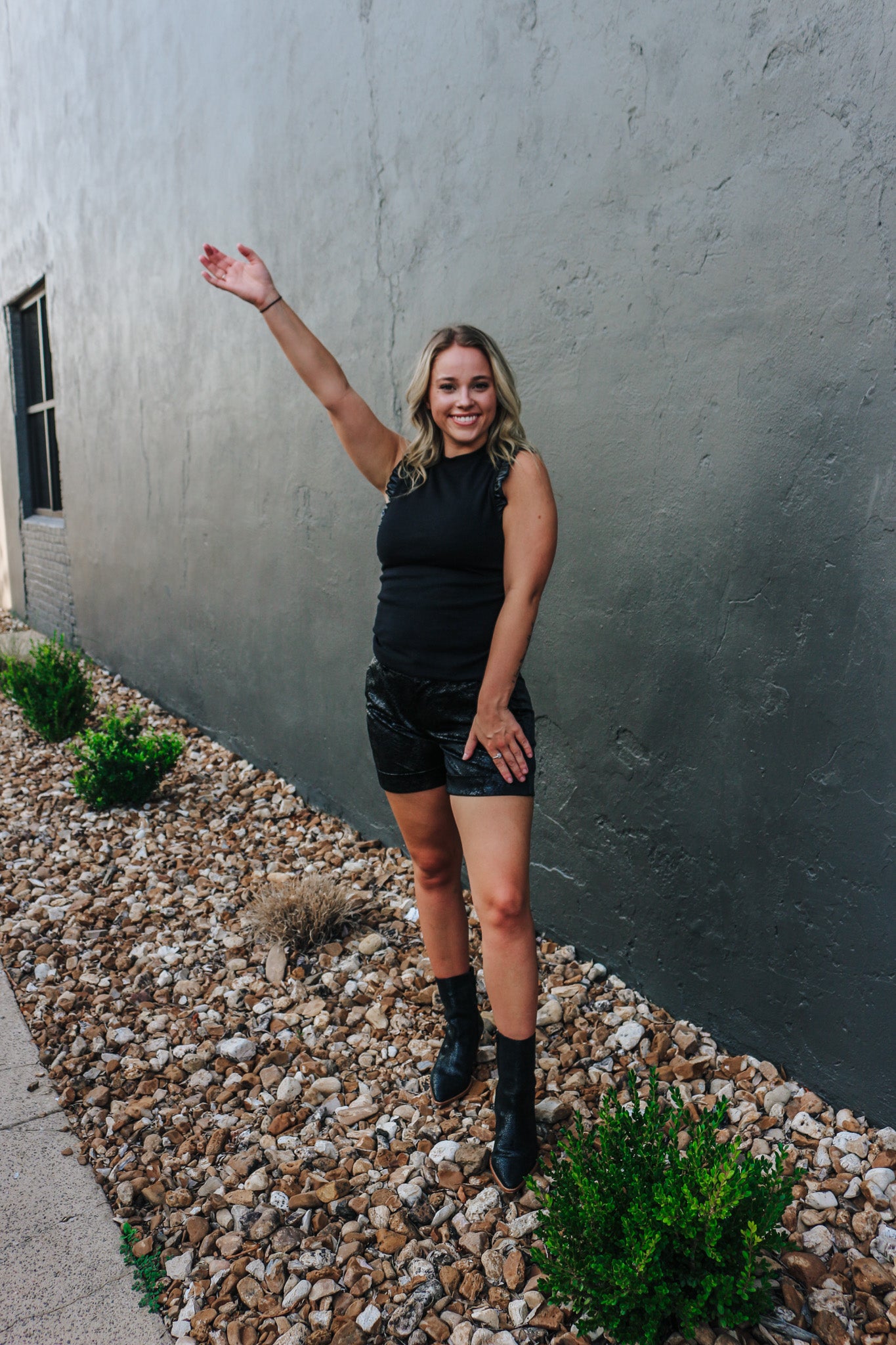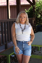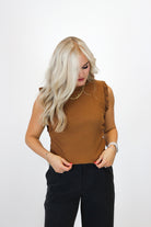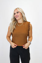 Stay playful and stylish with our Holding Hands Tank Top! This top features fun ruffle sleeves for a unique look. Perfect for pairing with any outfit - dress it up or down for endless possibilities!