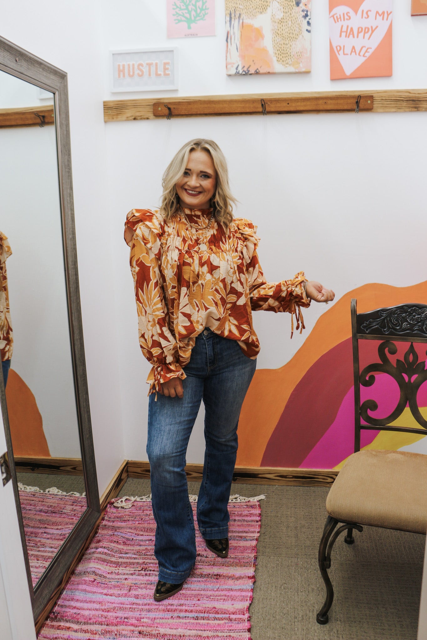 The Way Things Go Rust Floral Blouse