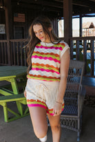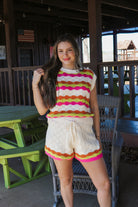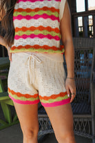 Tropic Tradition Ivory Fuchsia Crochet Shorts