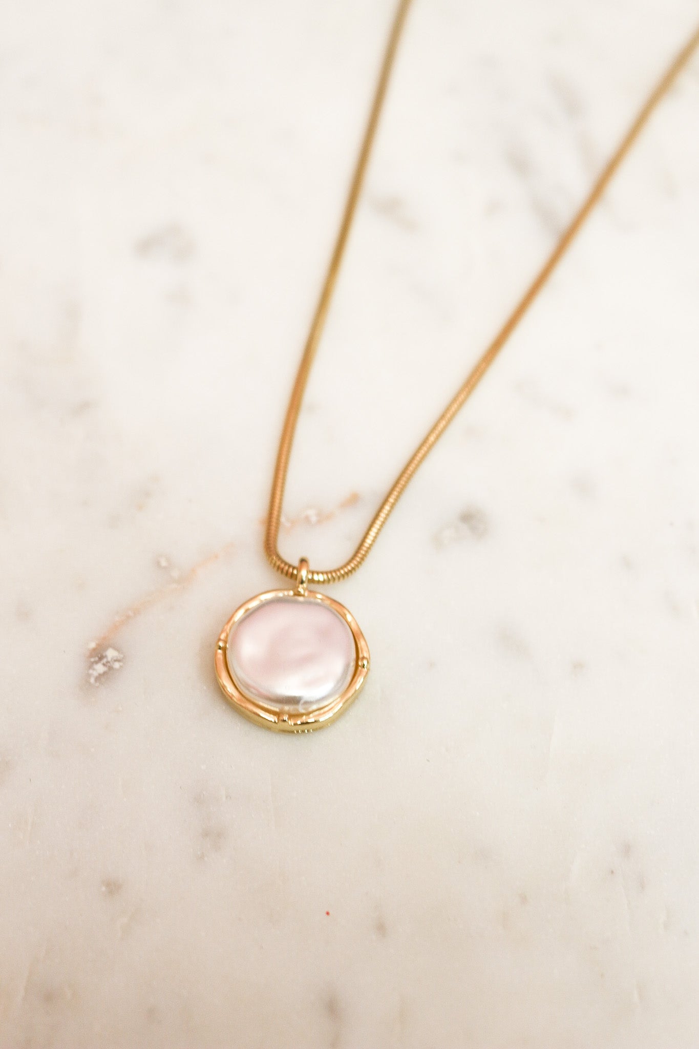 Gold Chain Pearl & Coin Charm 16"-18" Necklace