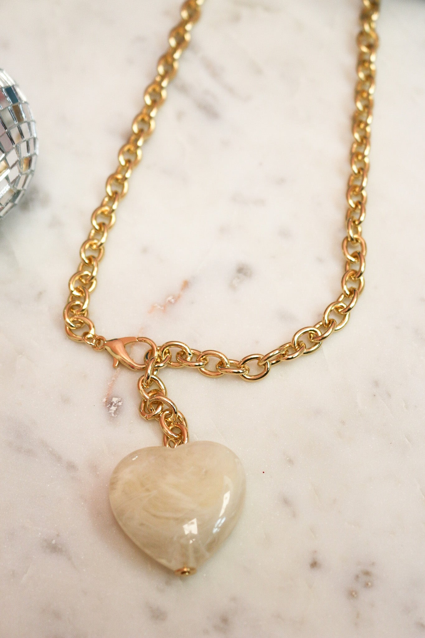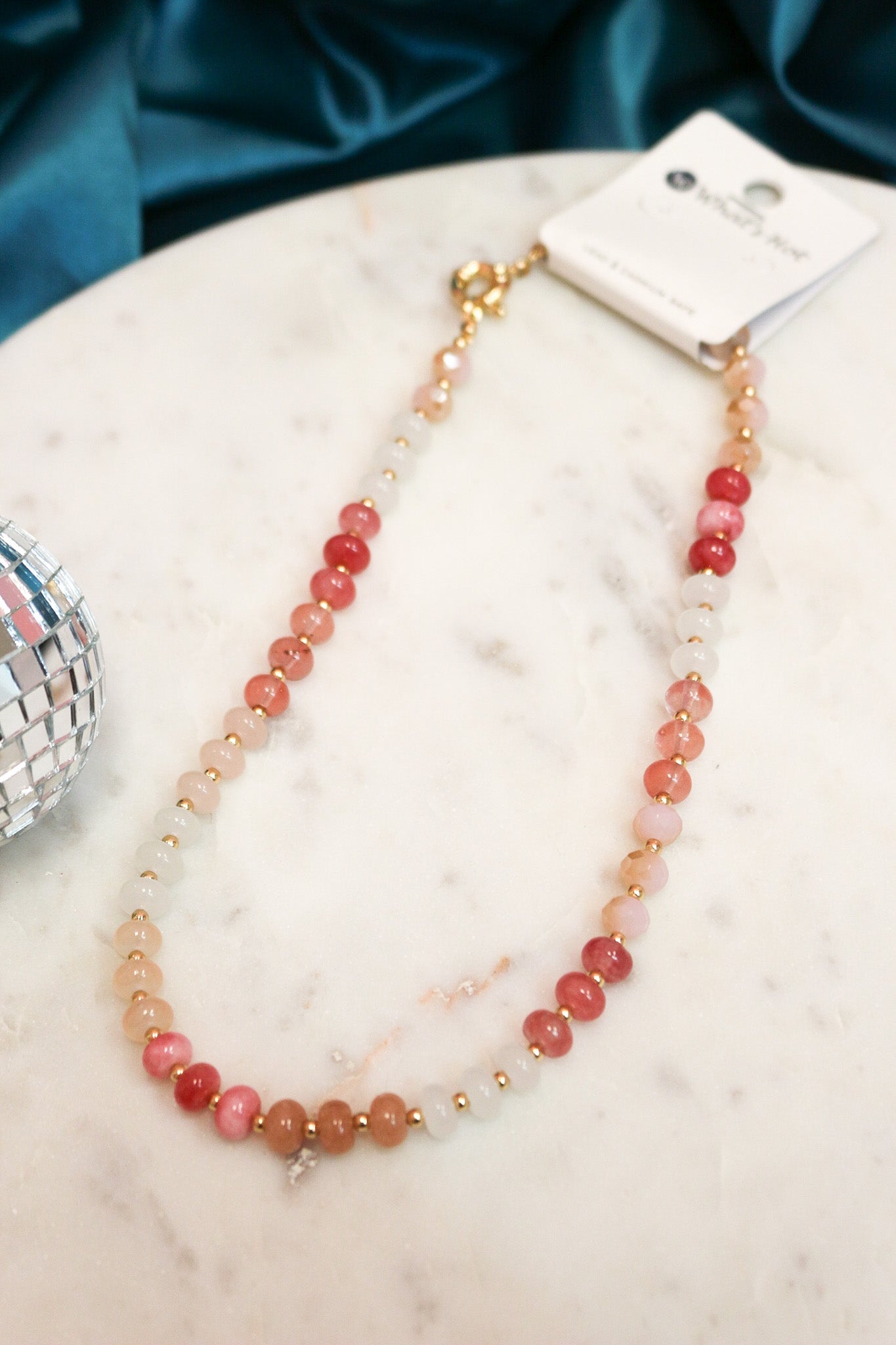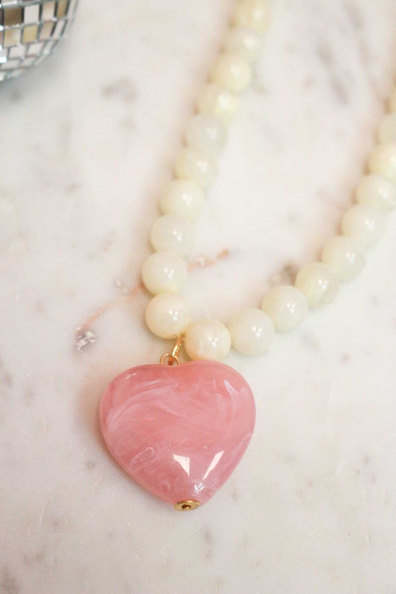 Pink Acrylic Beaded Heart Charm 16"-18" Necklace