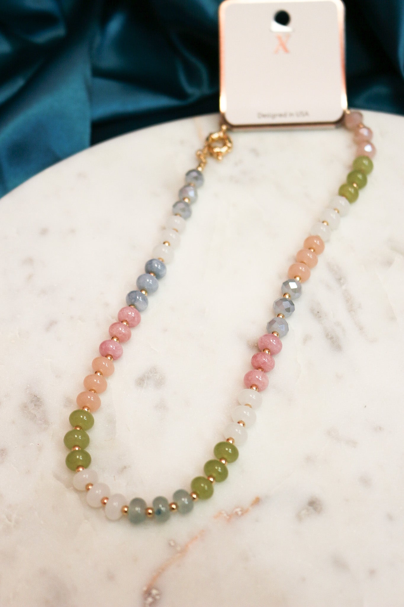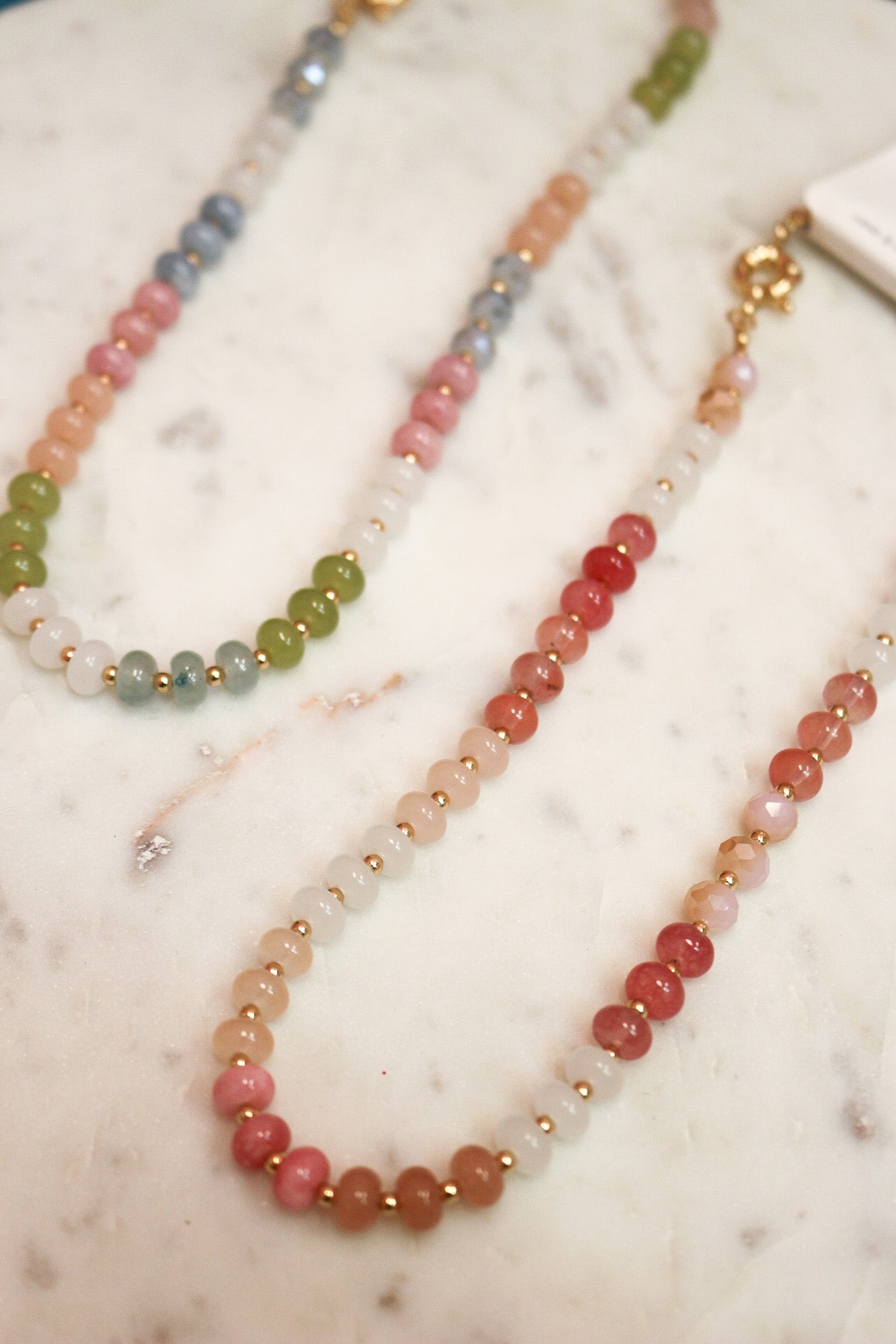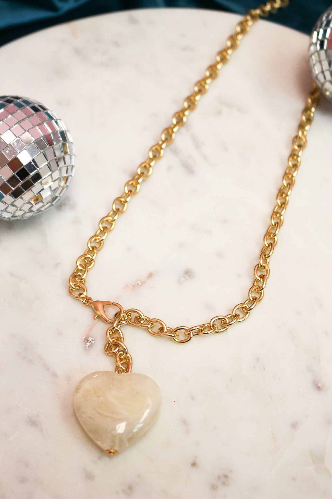 Pink Acrylic Beaded Heart Charm 16"-18" Necklace