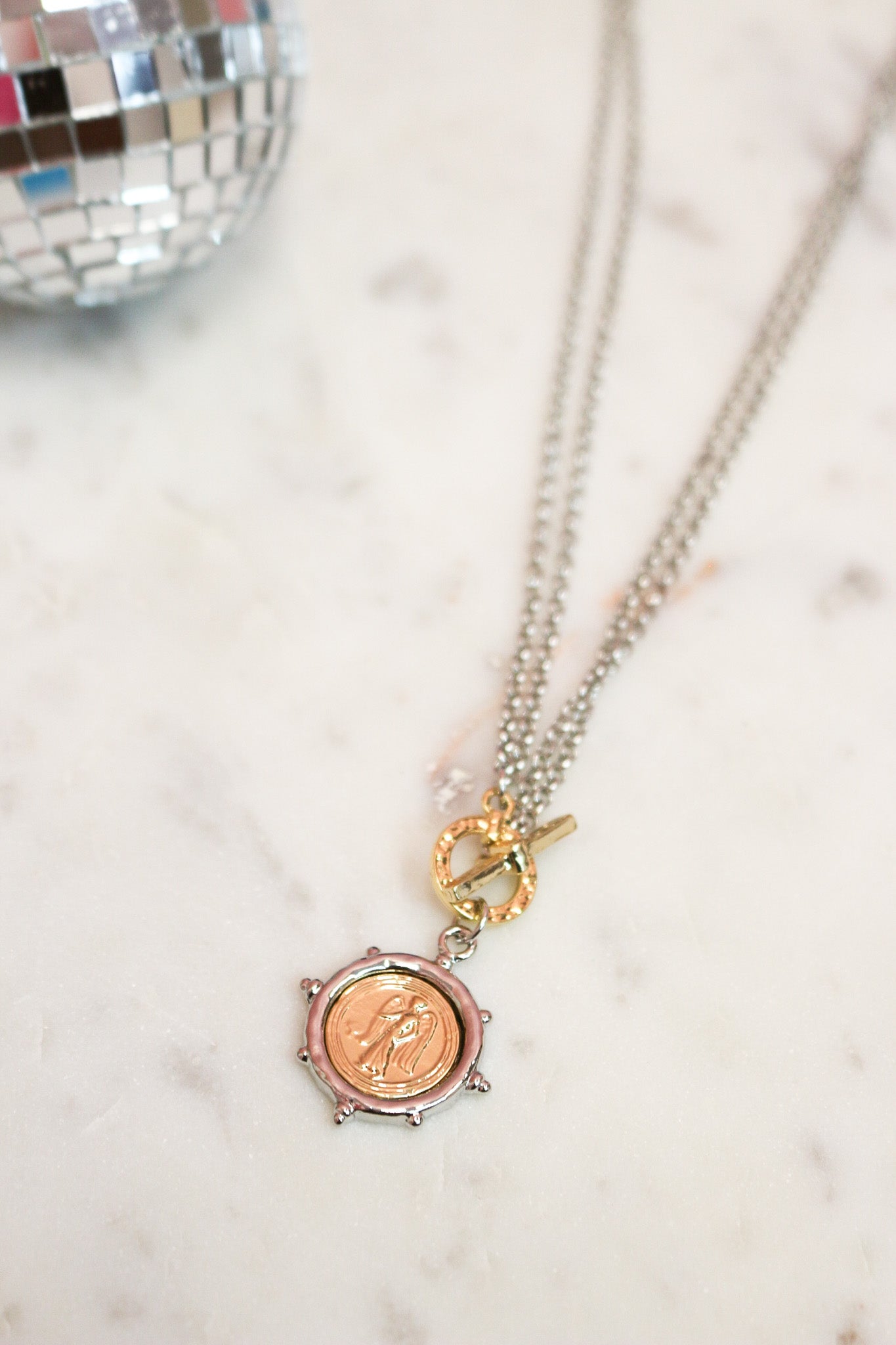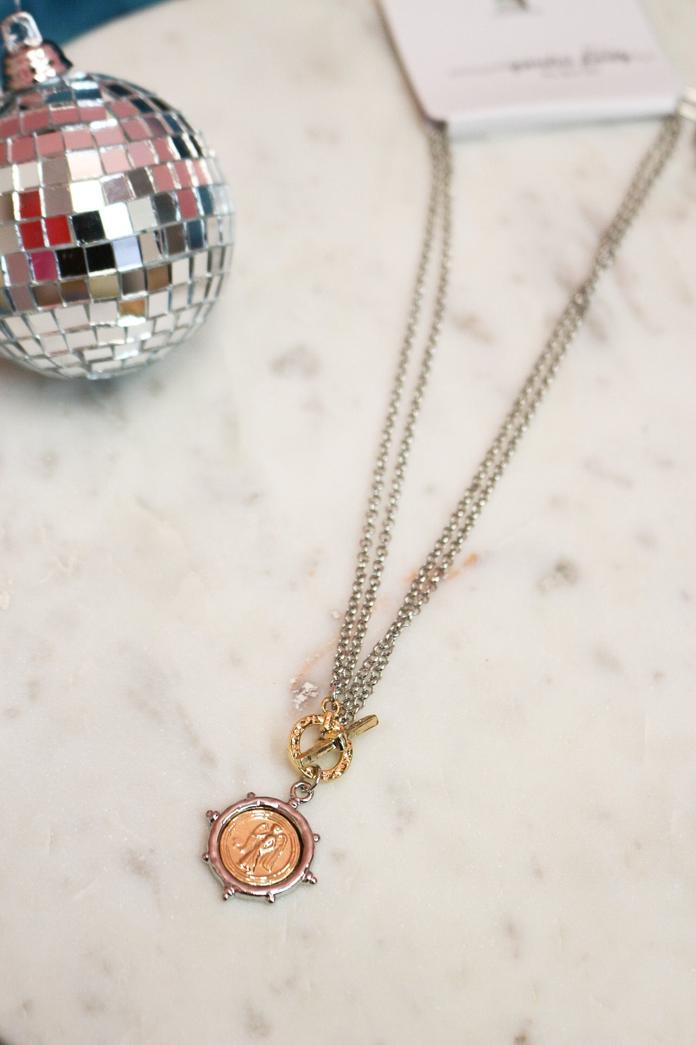 Silver Chain Two Tone Coin 16"-18" Necklace