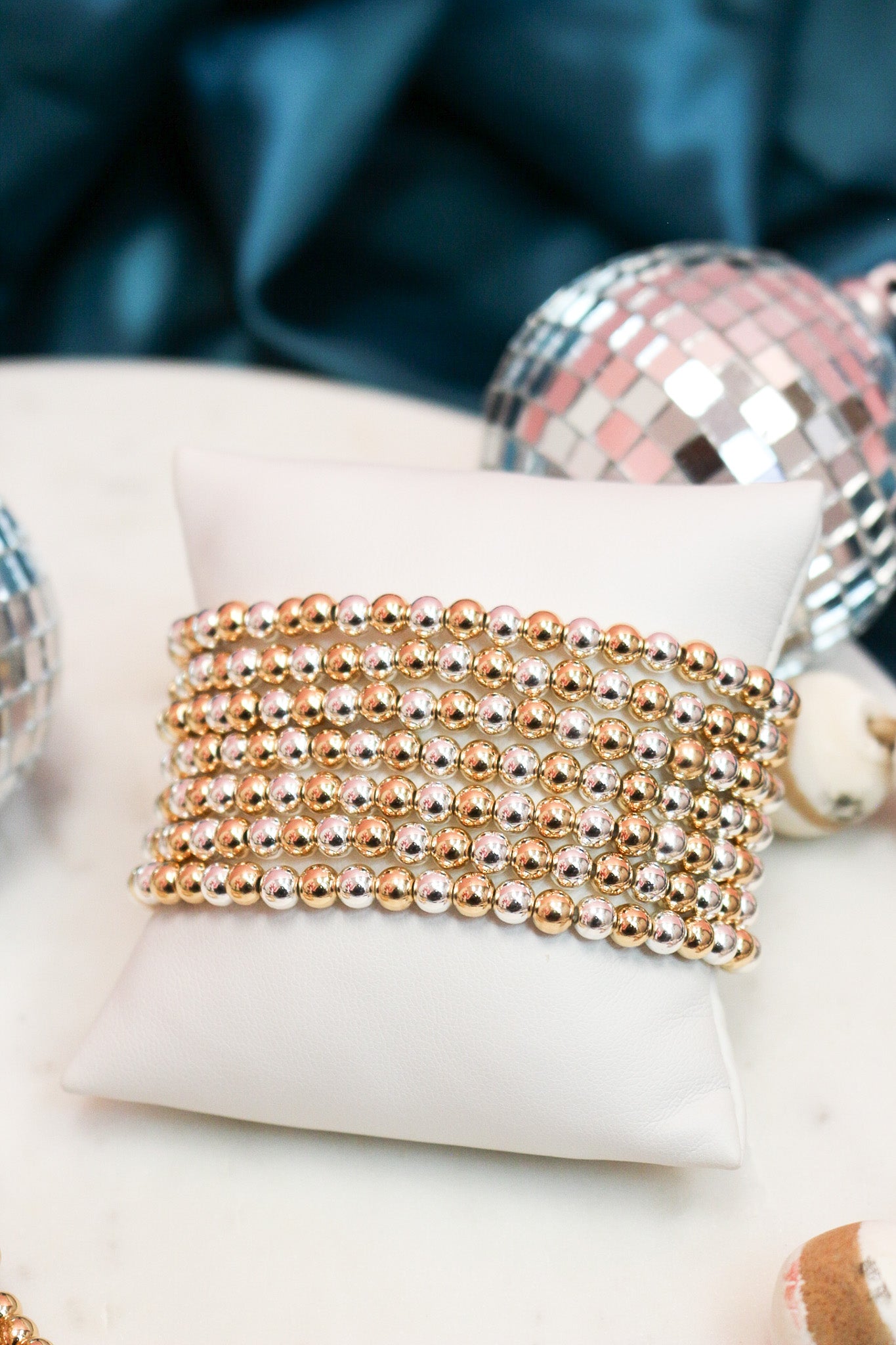 Stack up your wrist game with this vibrant set of seven beaded stretch bracelets! Each bracelet features lustrous 5MM beads in two eye-catching colors, perfect for mixing, matching, or gifting to your bestie. Water-resistant construction means you can wear them poolside, at the beach, or through your daily adventures without worry. Stretch to fit most wrist sizes comfortably. Mix-and-match your way to endless bracelet combinations!