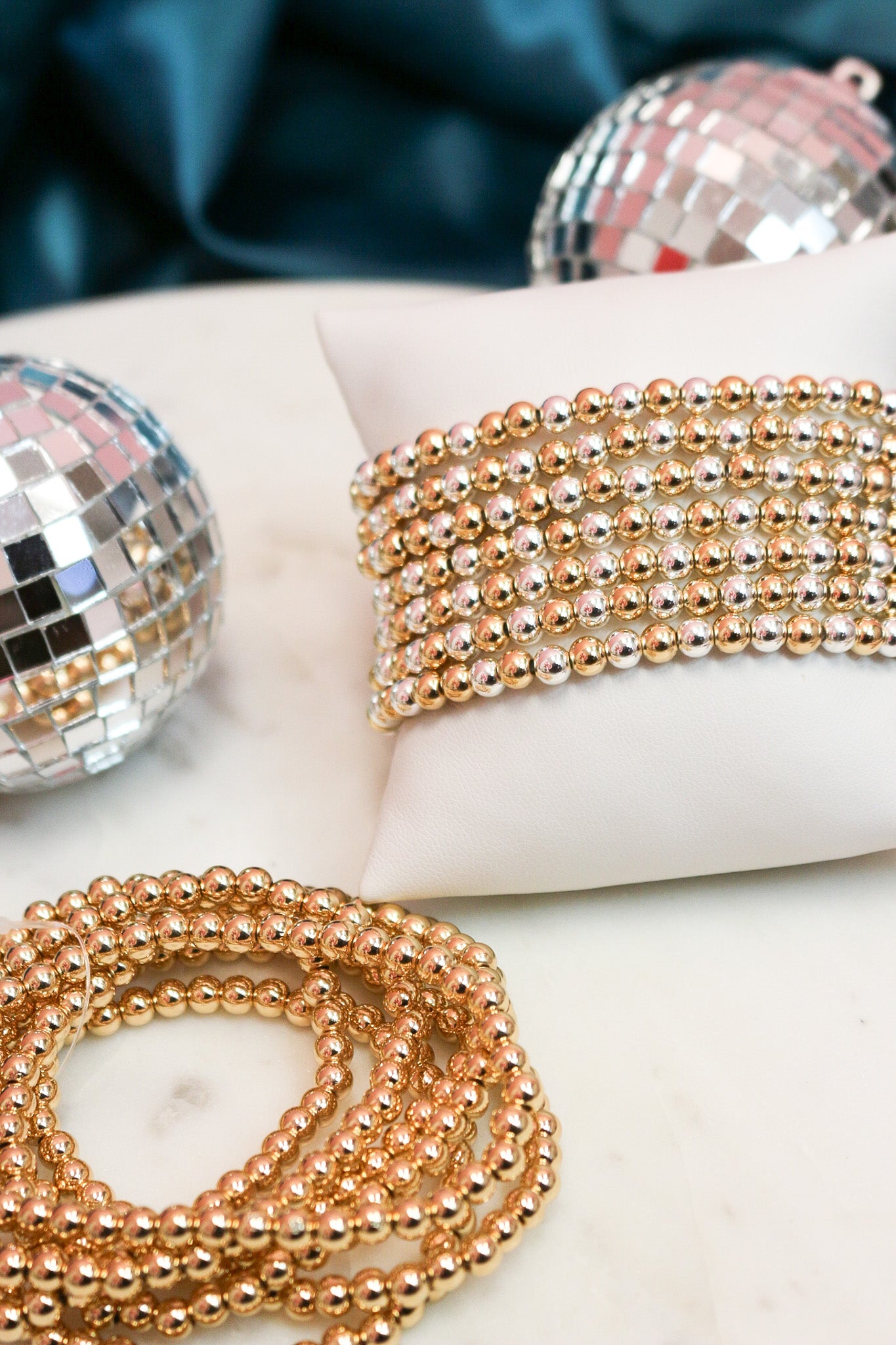 Water Resistant Set of 7 5MM Beaded Stretch Bracelets -2 Colors