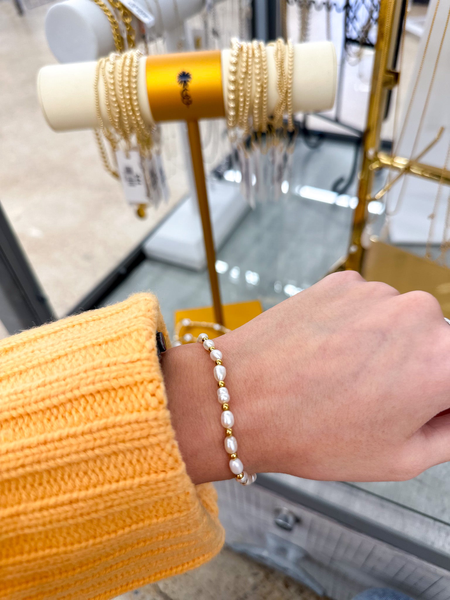 Water Resistant Set of 3 Gold 14MM Pearl Beaded Bracelets
