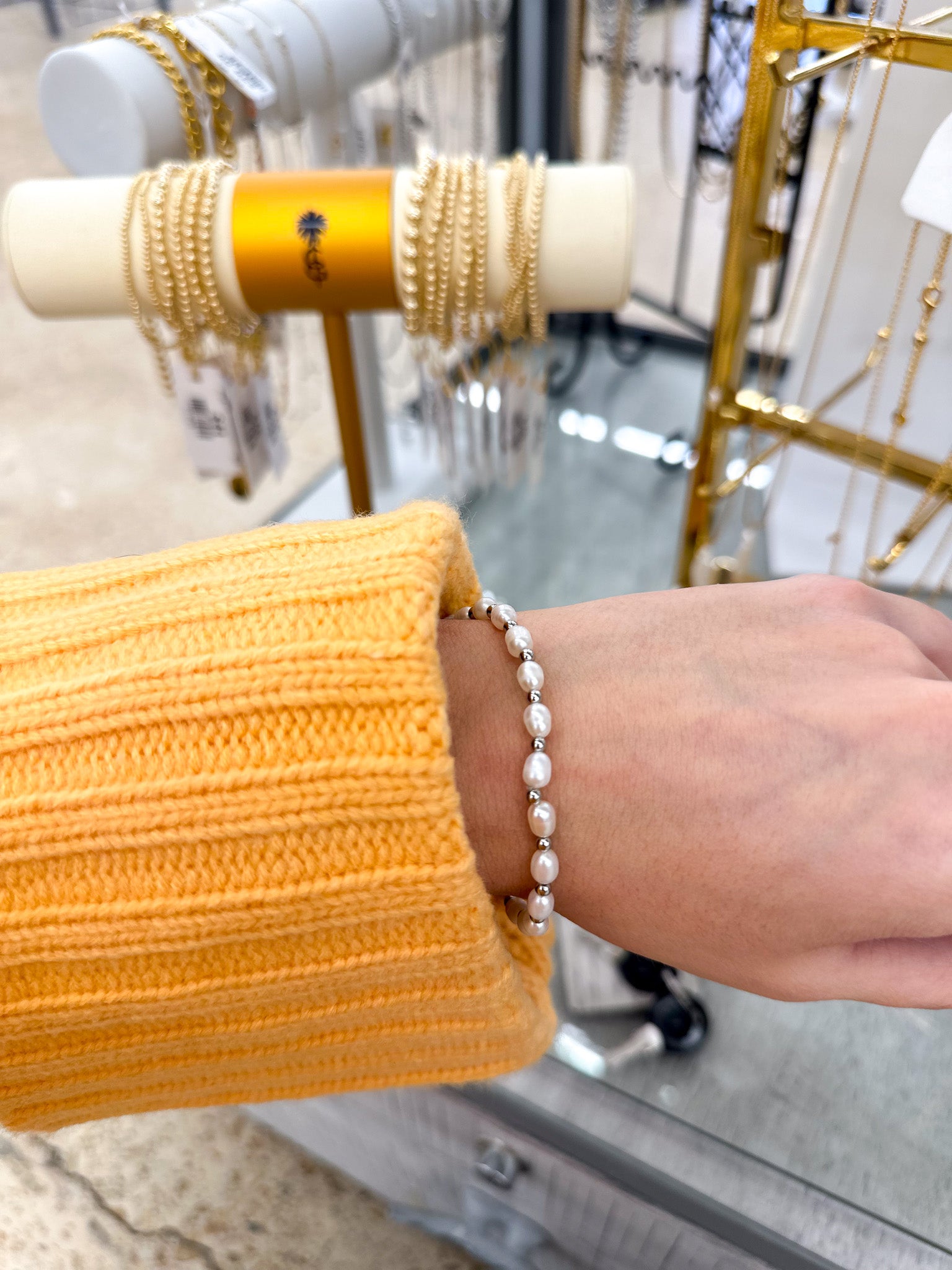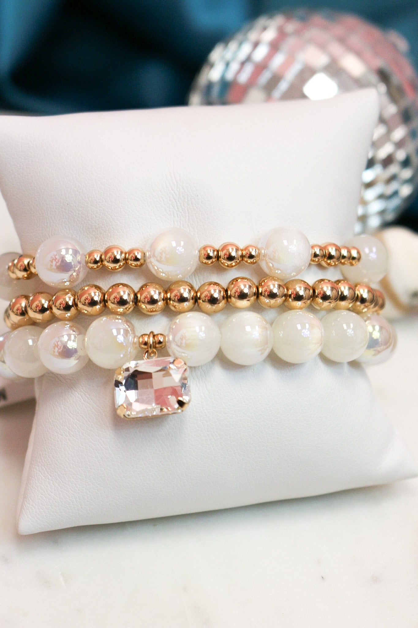 Water Resistant White Gold Beaded Set Of 3 Bracelets