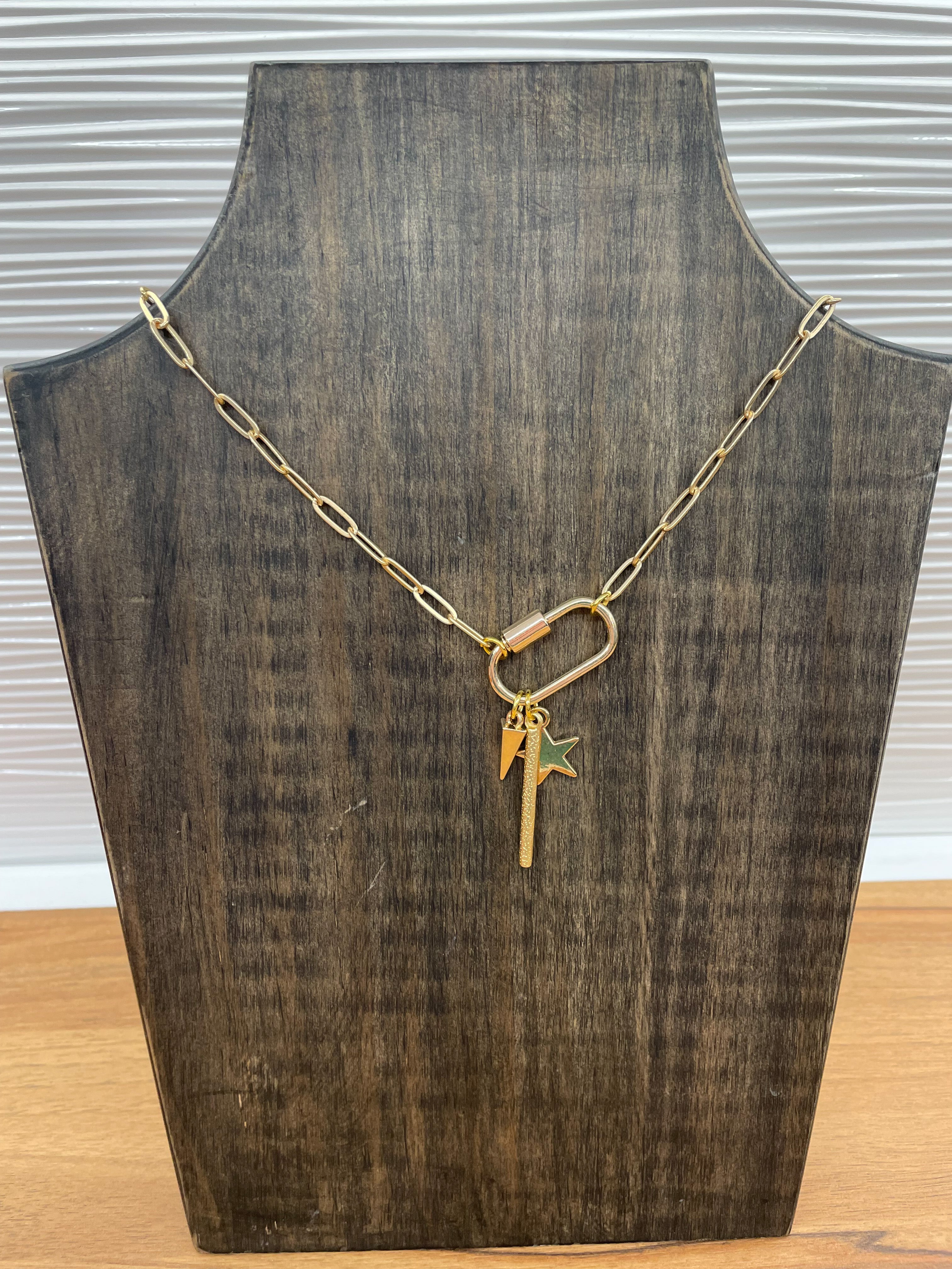 Gold and Pink Color Coated Metal Link 7.5" Stretch Bracelet
