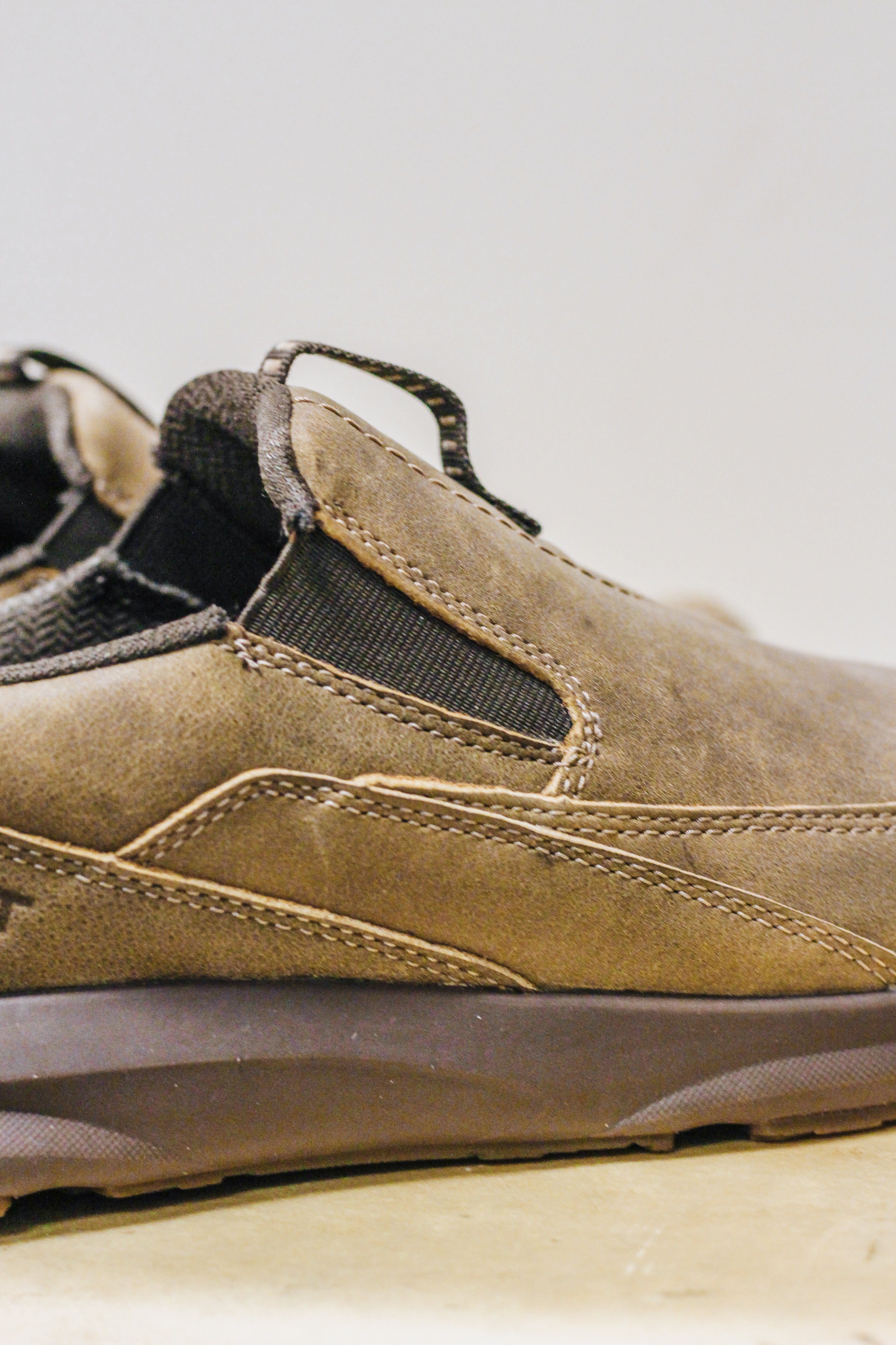 The same comfortable Spitfire you know and love, brought to you in a lower-cut slip-on style. The soft deconstructed leather and padded footbed make it perfect for kicking back.