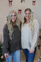 Unleash your style with our Favorite Distressed Stone Tan Sweater! Featuring an open back, this sweater adds a twist to your classic cozy look. Perfect for a day out or a night in, this sweater will be your go-to for any occasion.