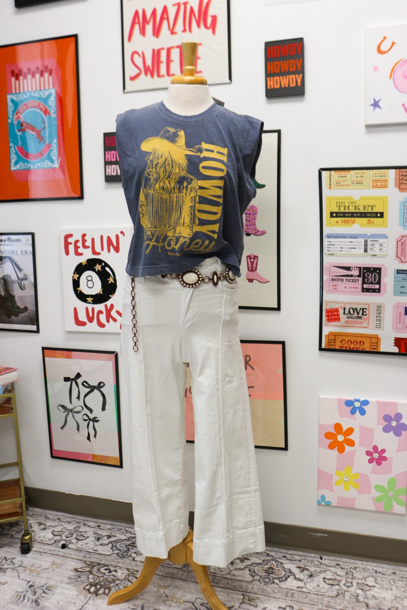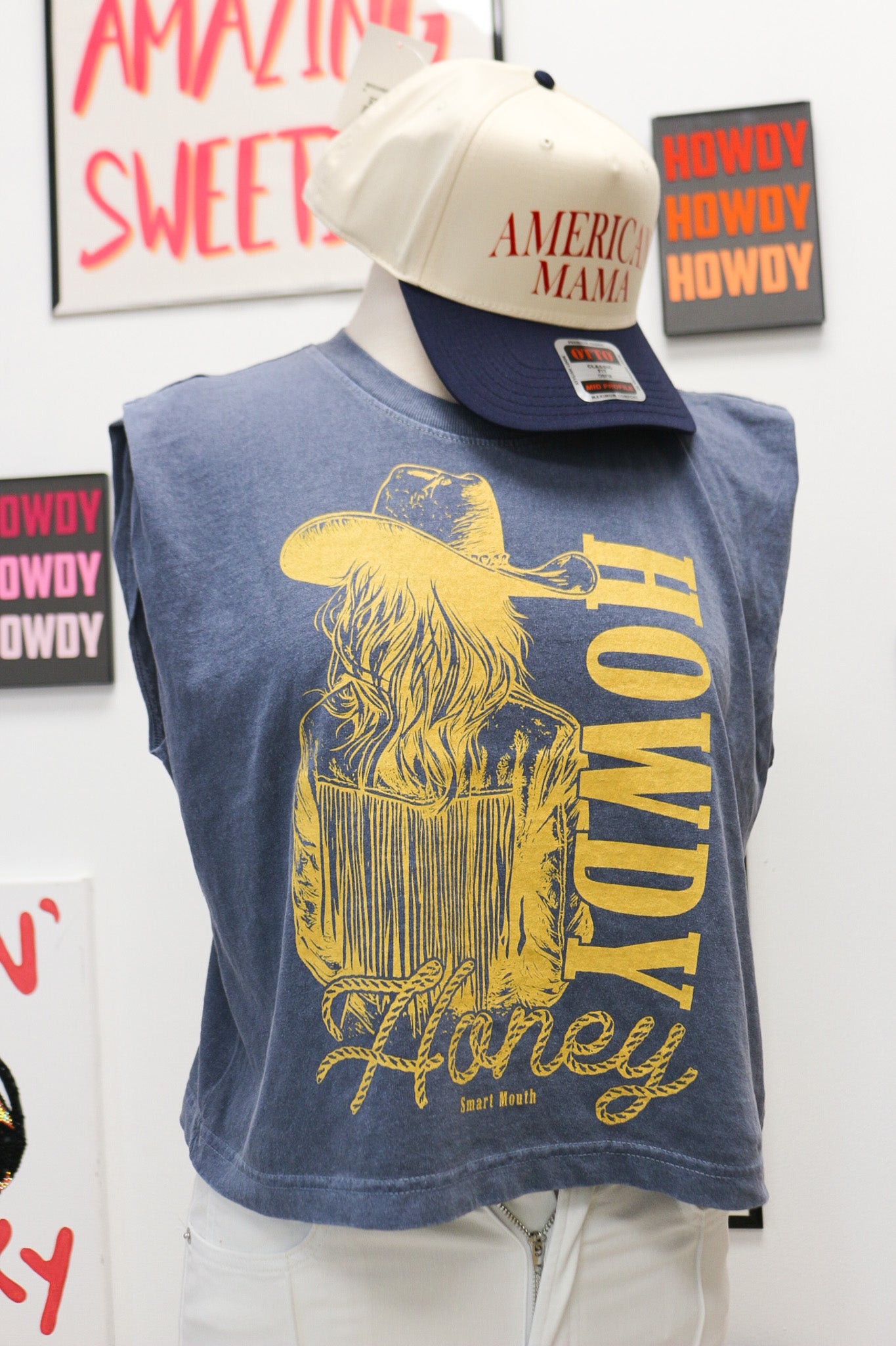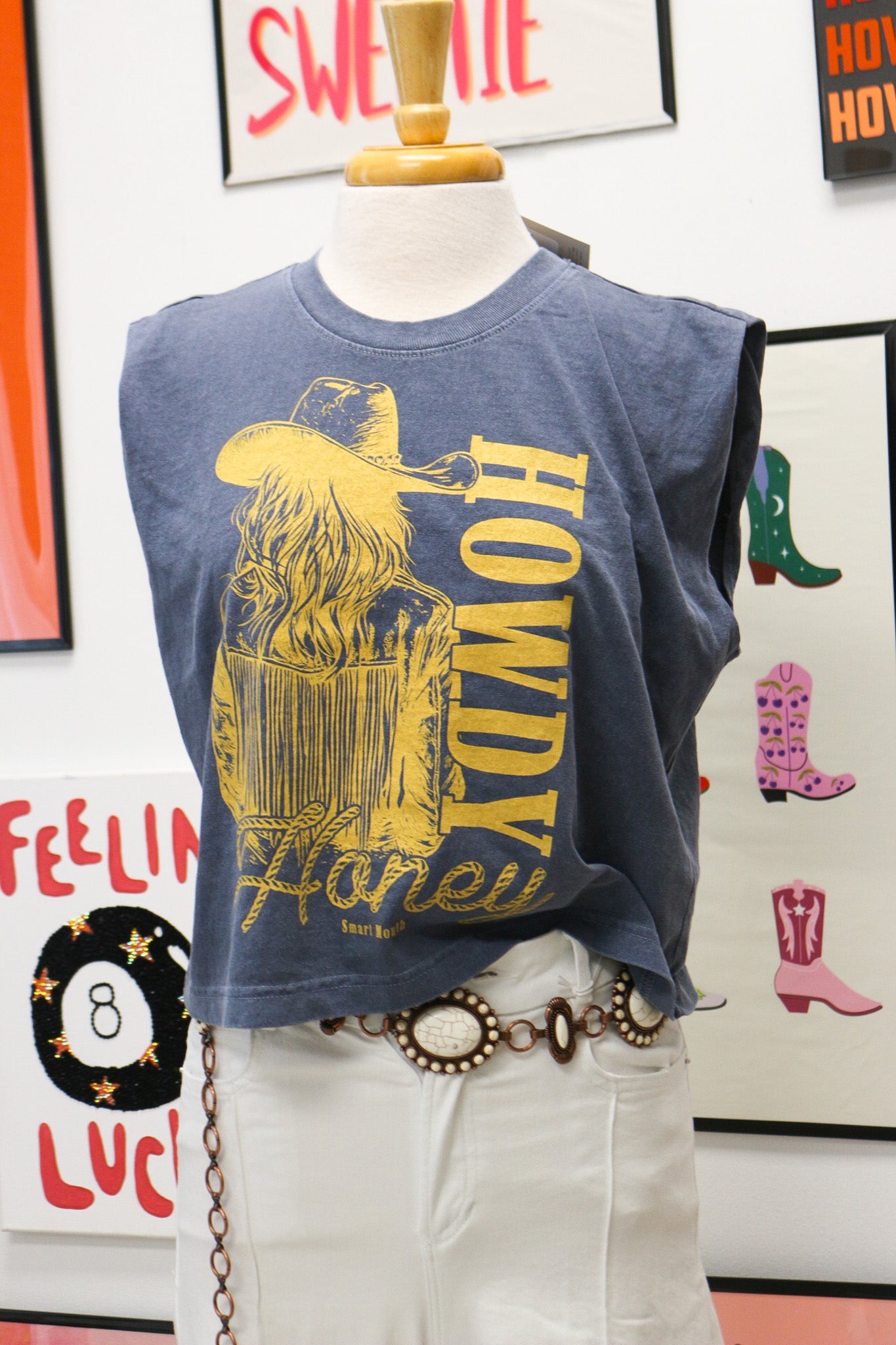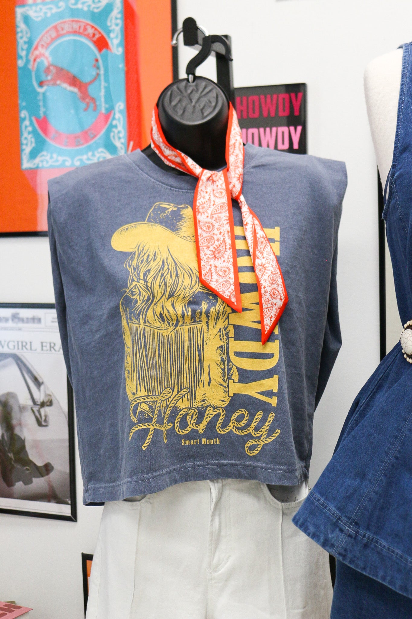 Embrace laid-back Western charm with this faded navy graphic tee. The "Howdy Honey" design captures that effortless, vintage-inspired aesthetic perfect for casual days. Soft, comfortable fabric makes it ideal for everyday wear, whether you're pairing it with jeans or layering it under a jacket. A timeless piece that adds character to any wardrobe.