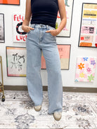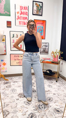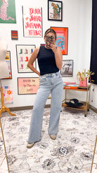 Rhinestone High Rise Wide Leg Jeans