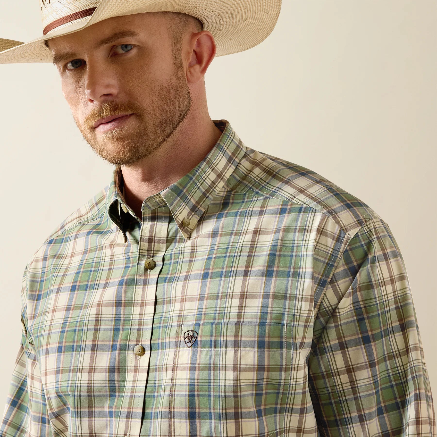 Ariat Men's Bronze Green Plaid Pro Series Sebastian Shirt