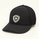 Comfy Ariat mens R222 cap by M&F Western Products. Black front panels with rubber Ariat shield logo. Black mesh panels with Velcro closure.