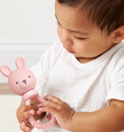 Shake off those teething blues with the Sweetie Rattle™ silicone teether. Made of soft, flexible silicone, this engaging rattle features multiple textures to soothe sore gums along with gentle rattle sounds to teach cause-and-effect.