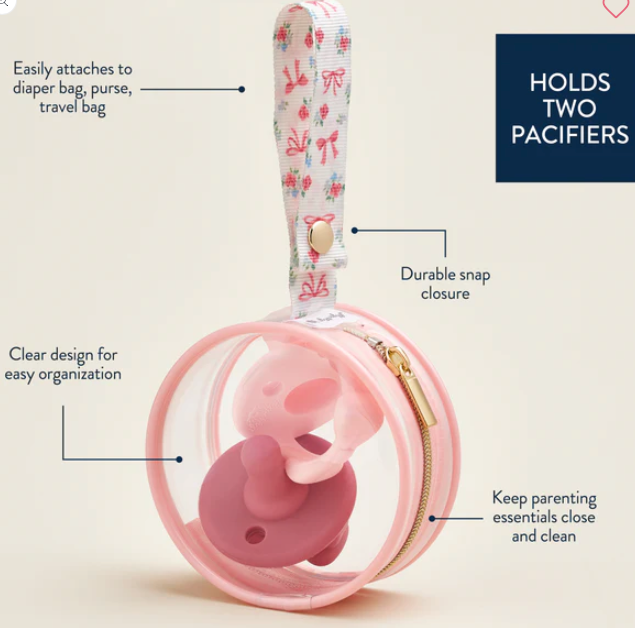 The clear winner in pacifier storage! The multi-use Itzy Paci Case™ attaches onto your diaper bag, purse, or travel bag to keep essential parenting items in clear view. Just snap the case to your diaper bag and go! Clear material shows off your adorable Itzy Ritzy pacifiers and keeps them clean inside your bag.