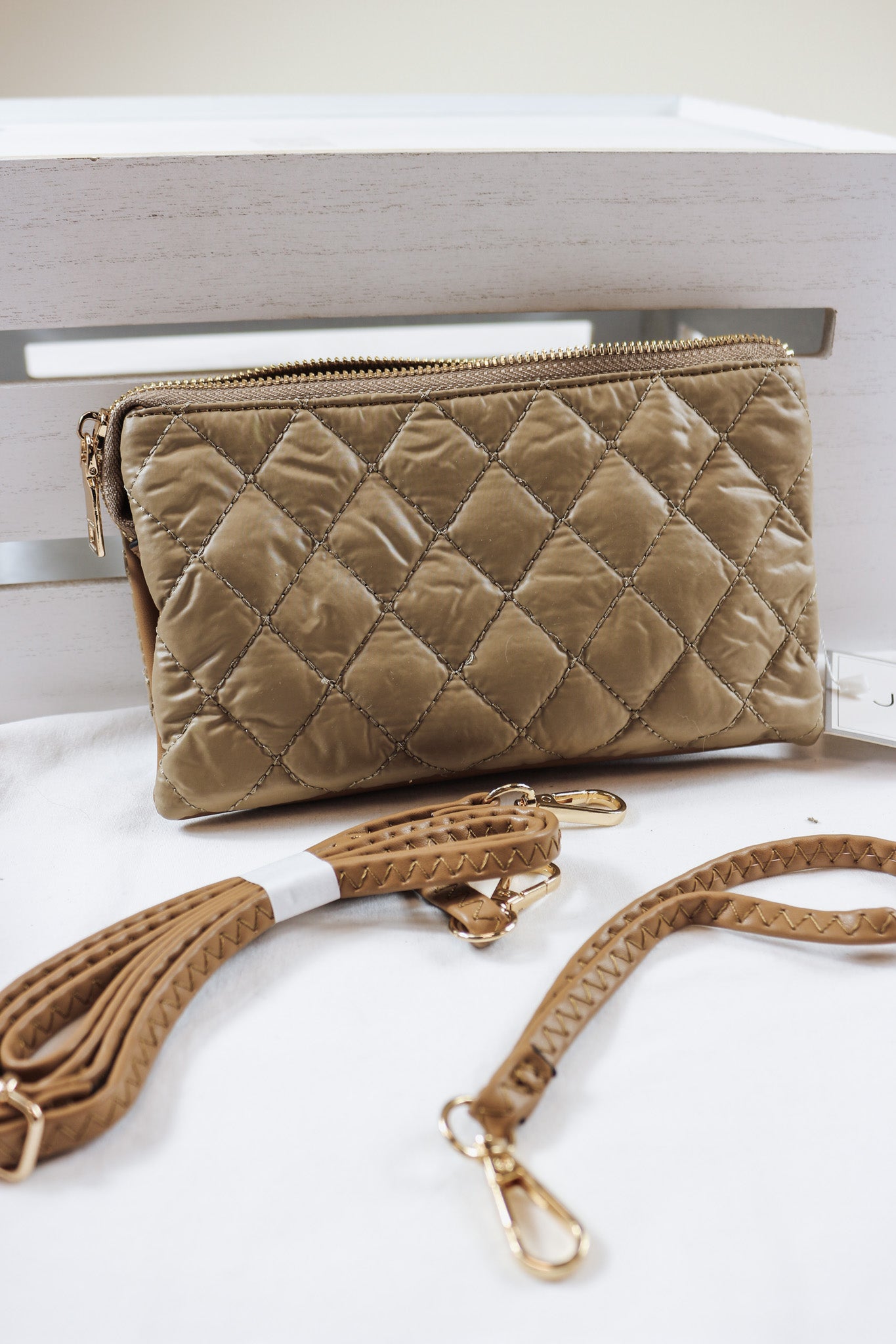Taupe Riley Puffer 3 Compartment Crossbody/Wristlet Bag