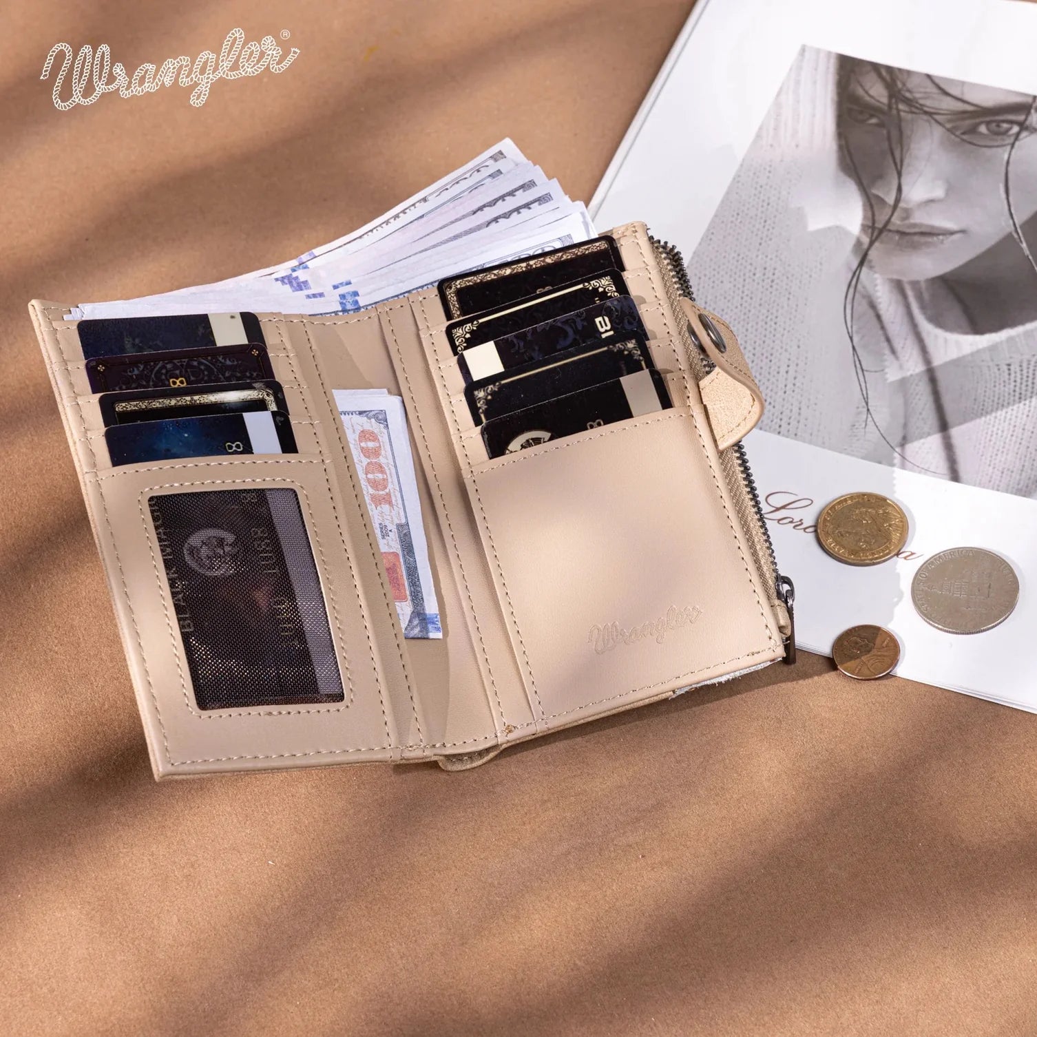 Wrangler Genuine Hair-On Cowhide Card Holder Bi-Fold Wallet