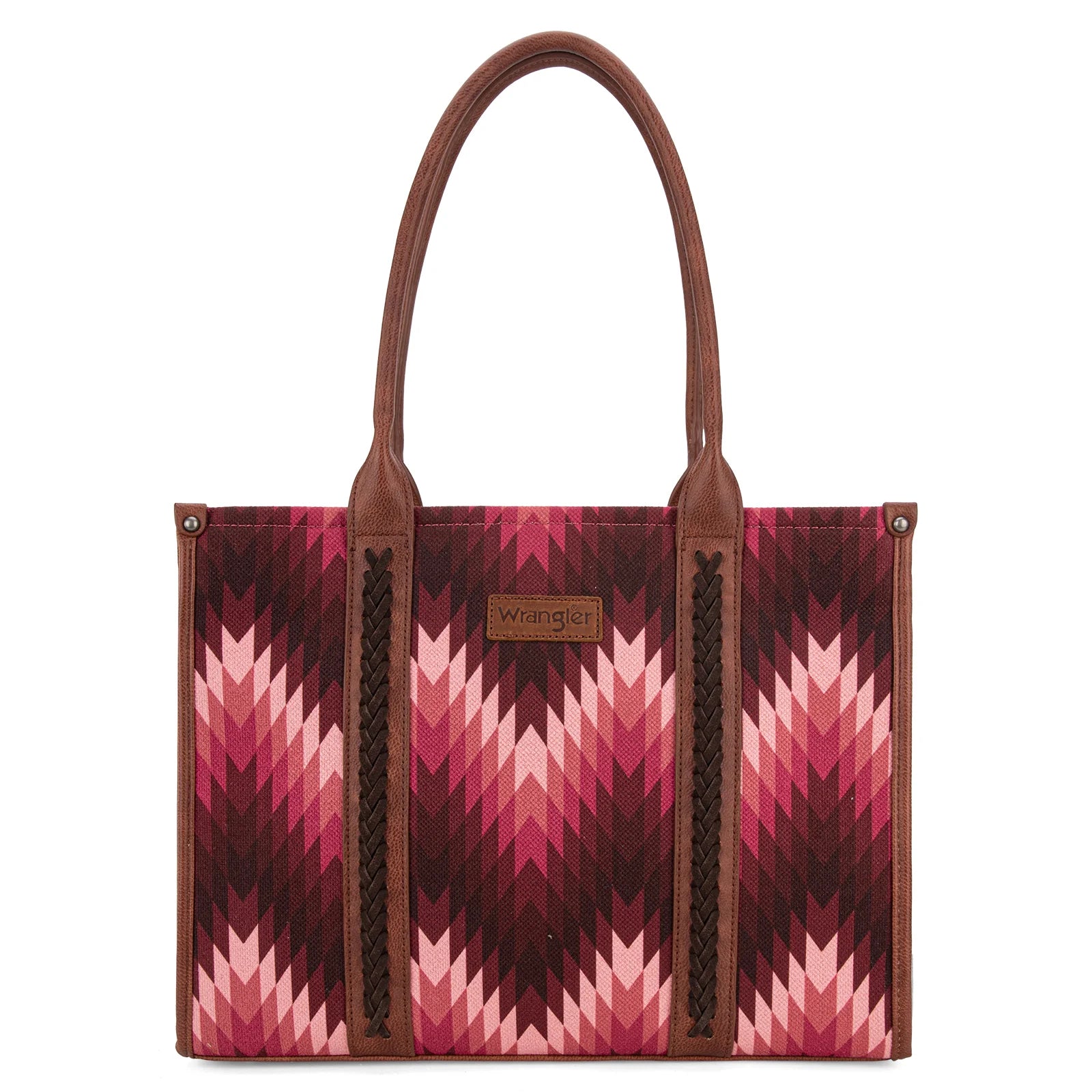 Wrangler Southwestern Pattern Dual Sided Print Concealed Carry Wide Tote - Dark Pink