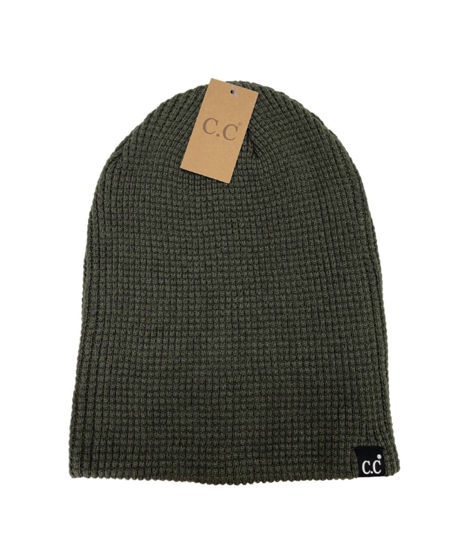 Unisex Waffle Knit Cuffed/Slouchy C.C. Beanie -Olive