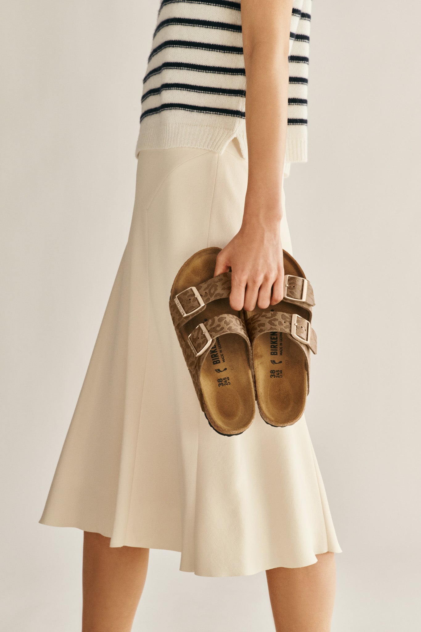 Bold by nature, timeless by design. The Arizona sandal in a subtle leopard print and classic hardware. Designed on a contoured footbed, feels comfortable in every spot.