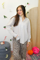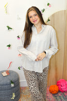 Embrace your inner romantic with this striped khaki blouse that's equal parts sweet and sassy. Featuring a playful lolita-inspired silhouette, it's the perfect piece for adding vintage charm and a dash of fun to any outfit. Effortlessly charming and undeniably cute.