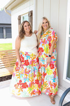 Ellie Palm Spring Floral Tiered Maxi Skirt