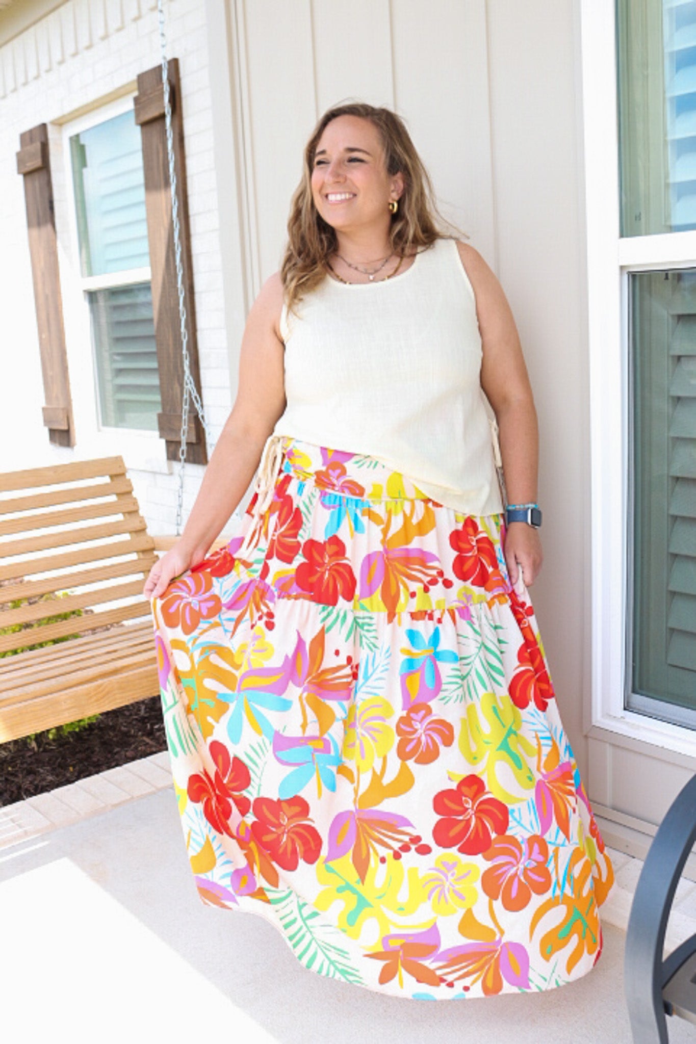 • Tiered maxi skirt for a flowy and feminine look