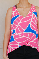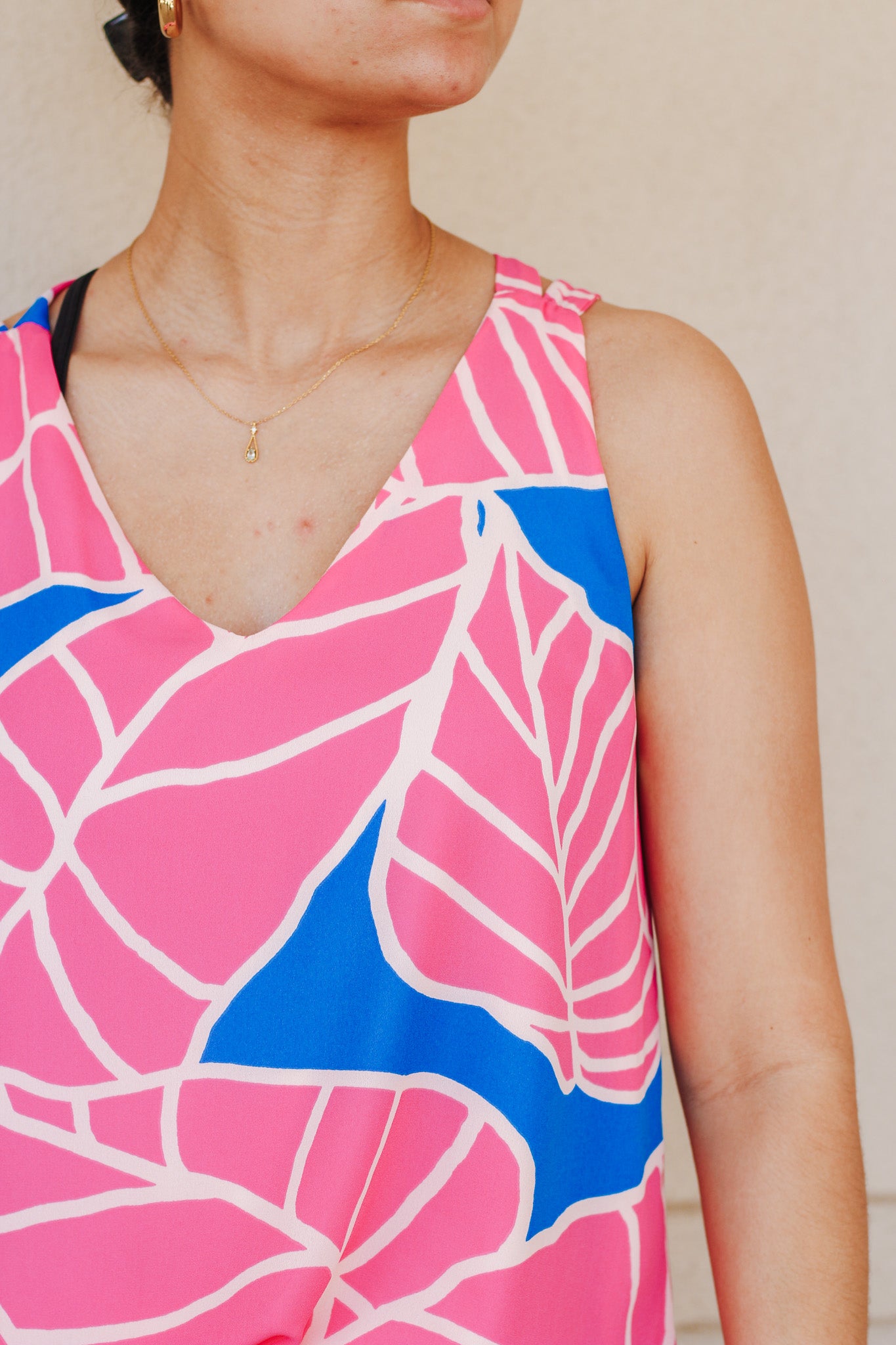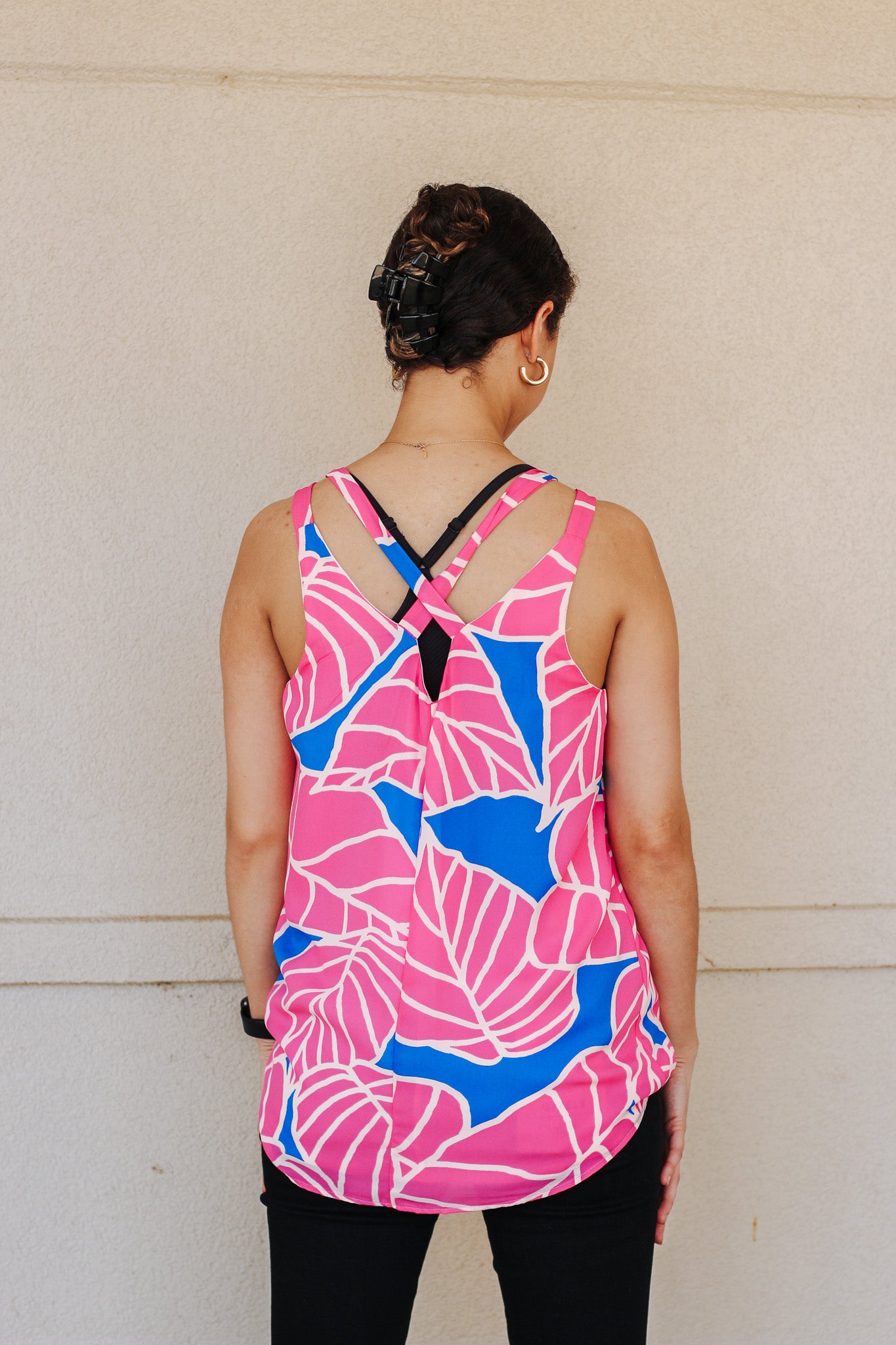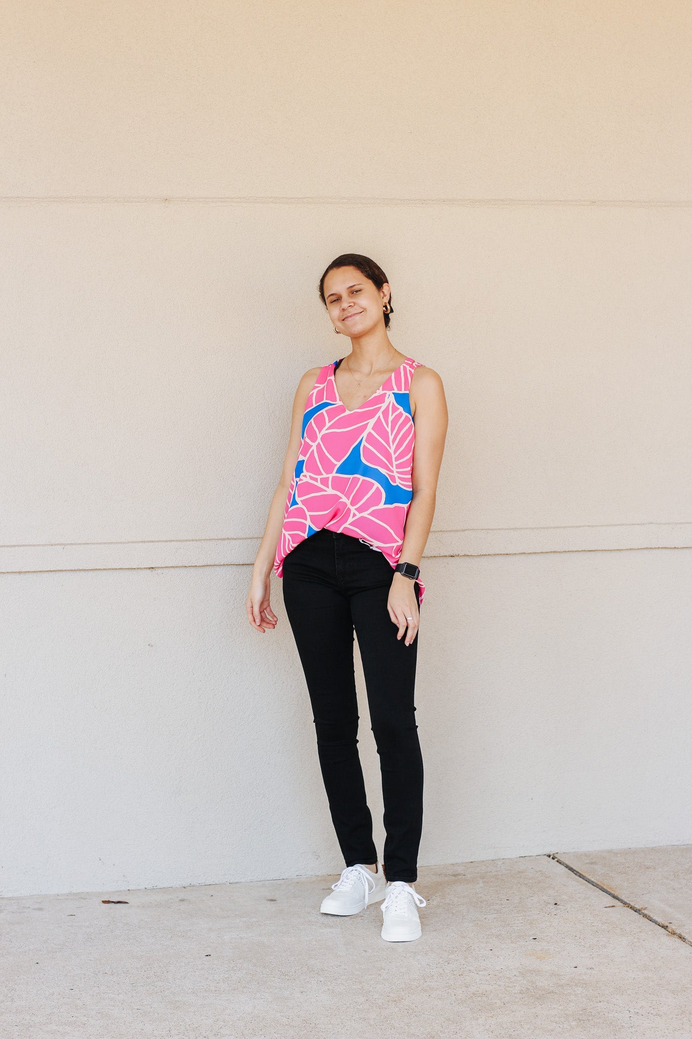 Show off your tropical style in the Sydney Pink & Blue tank top! With bold and beautiful pink and blue leaf patterns, you'll be the flashiest one on the beach! Who knew a simple tank top could be so leafy fun?!