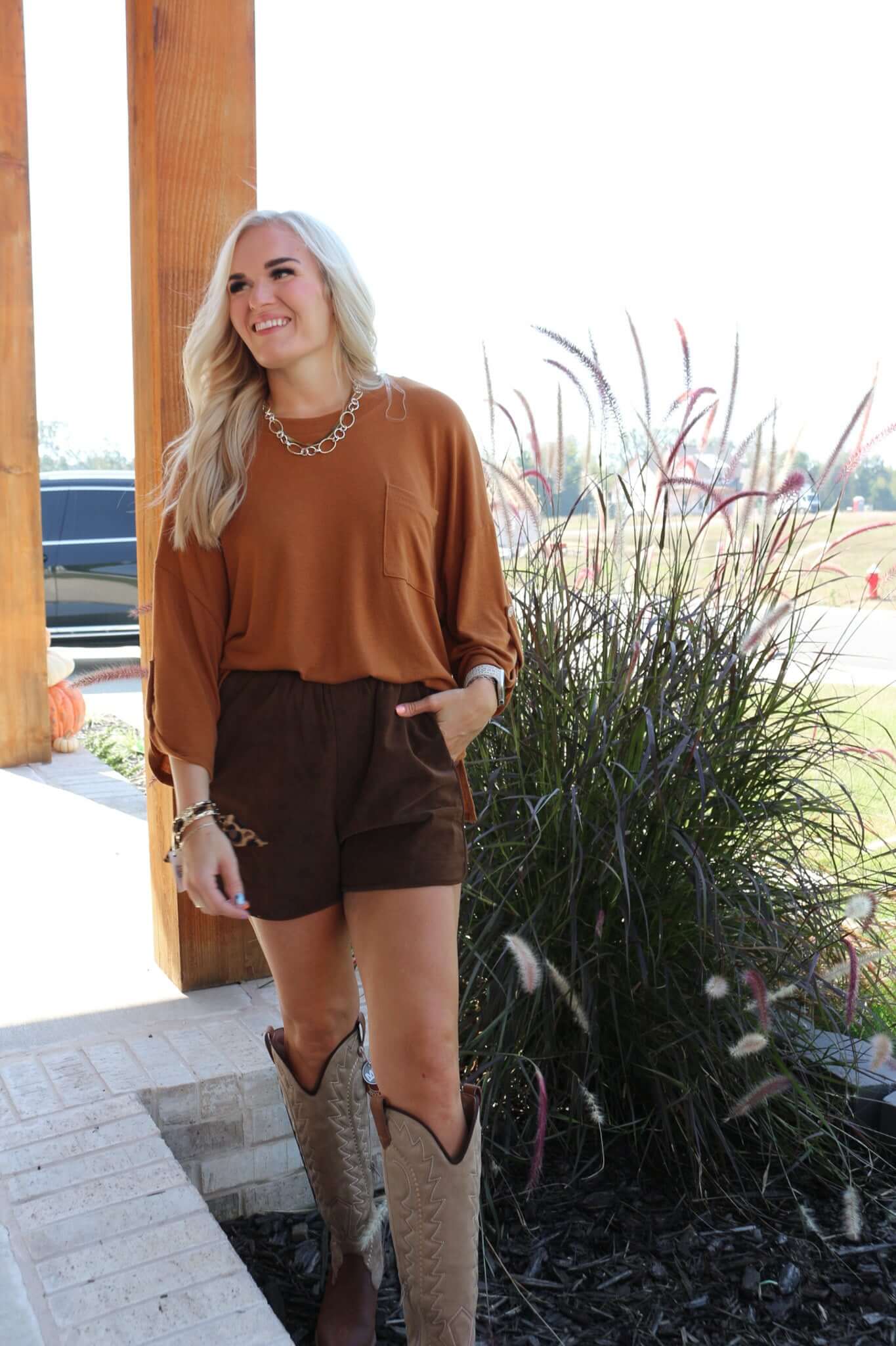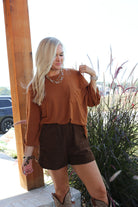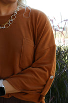 This To The End Of Time Chestnut Top features 3/4 sleeves for a comfortable and stylish look. Get ready to turn heads and make a statement wherever you go with this must-have addition to your wardrobe!