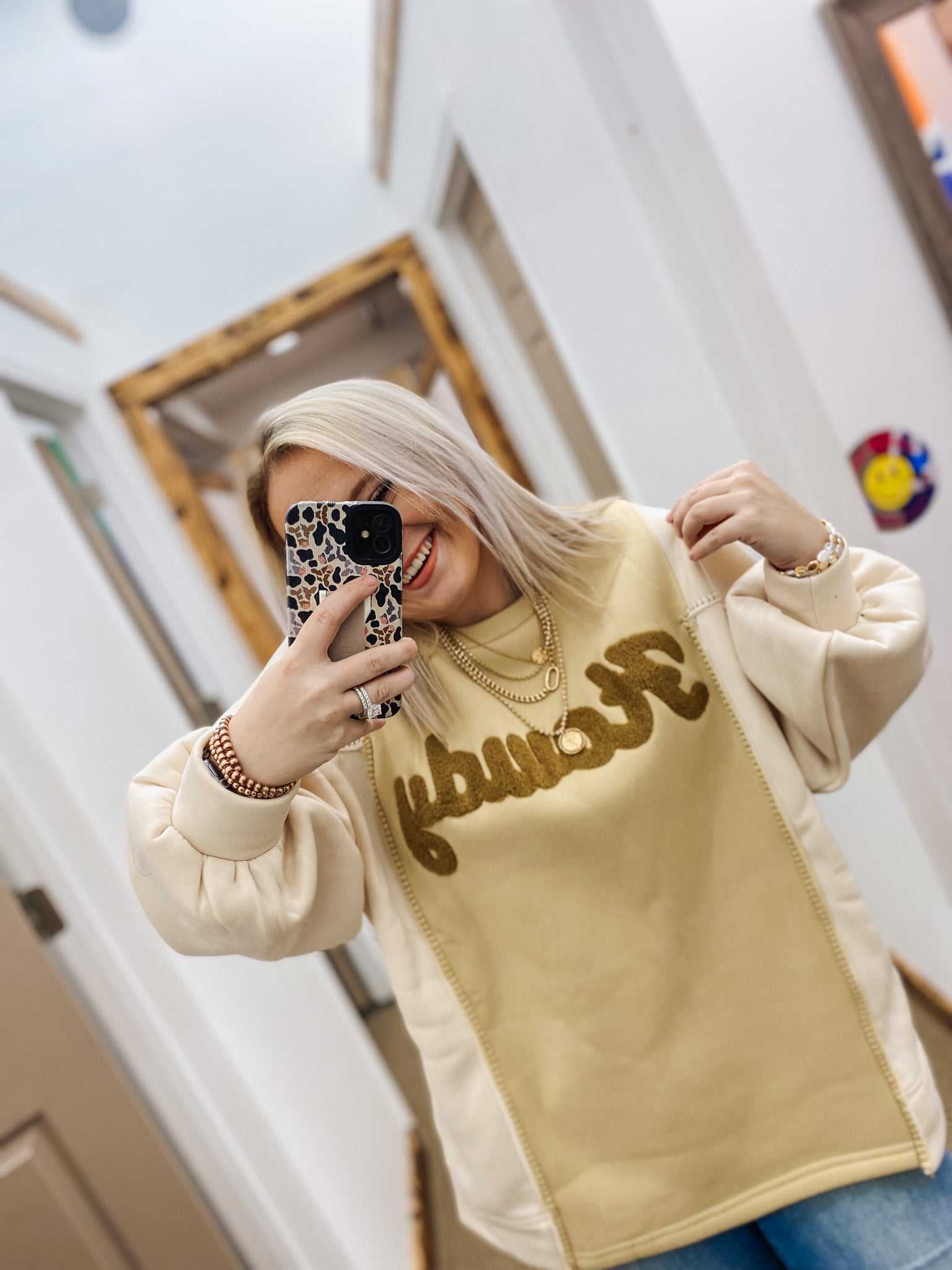 Unleash your inner quirky side with our In My Zone Howdy Latte Sweatshirt! Made with soft and cozy material, this sweatshirt is perfect for lounging or running errands. Stay warm and stylish while expressing your fun-loving personality with this unique piece.