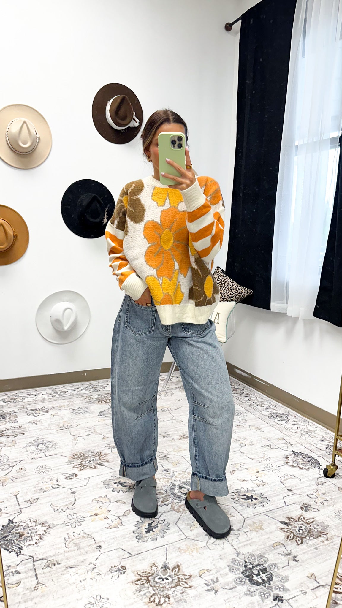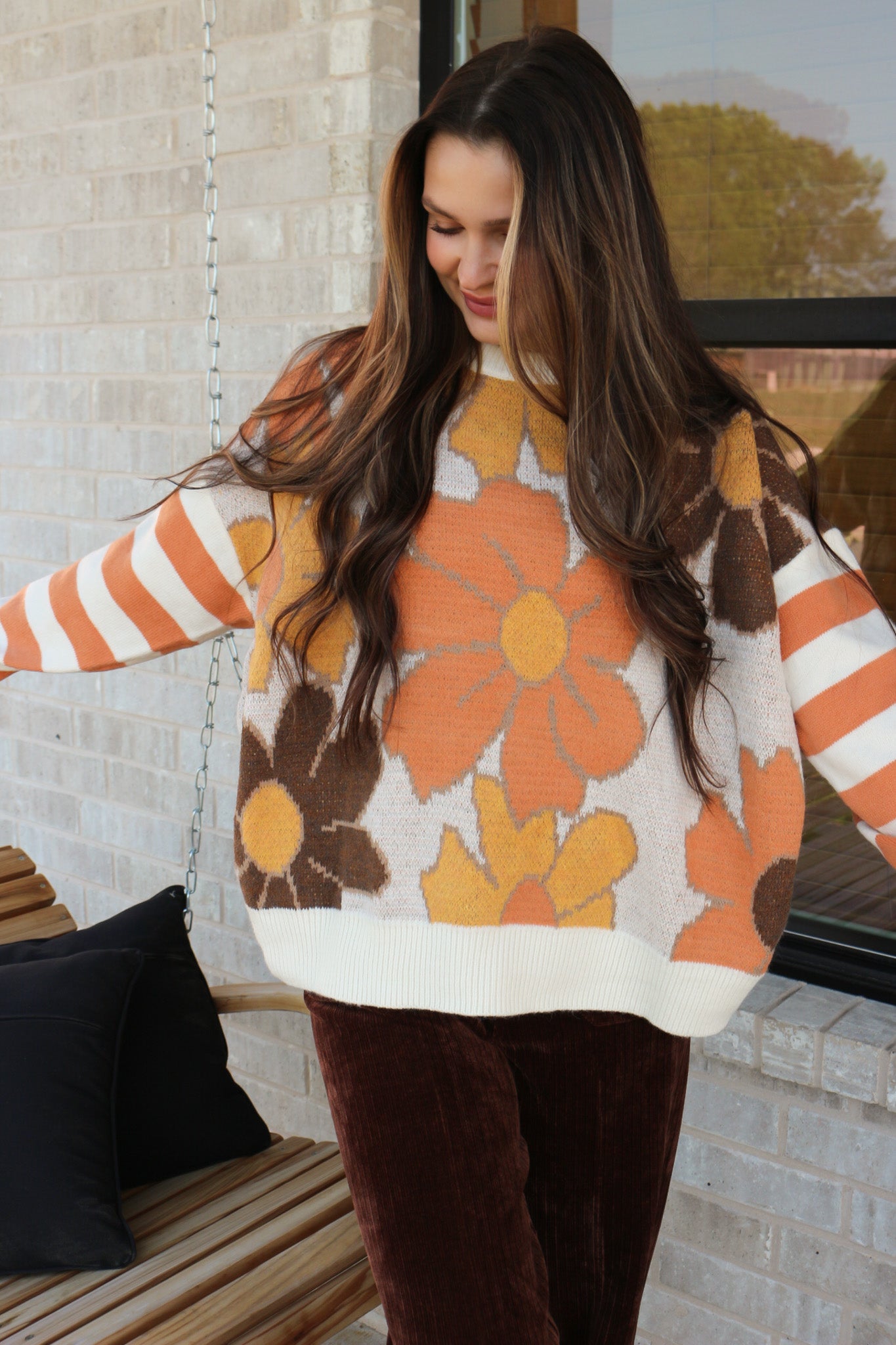Embrace cozy charm with this Rustic Fields Floral Oatmeal Sweater, blooming in warm orange and brown tones. Its soft oatmeal base pairs perfectly with playful floral accents, making it your go-to for autumn strolls or chilly coffee dates. Stay comfy and stylish while celebrating the colors of the season!