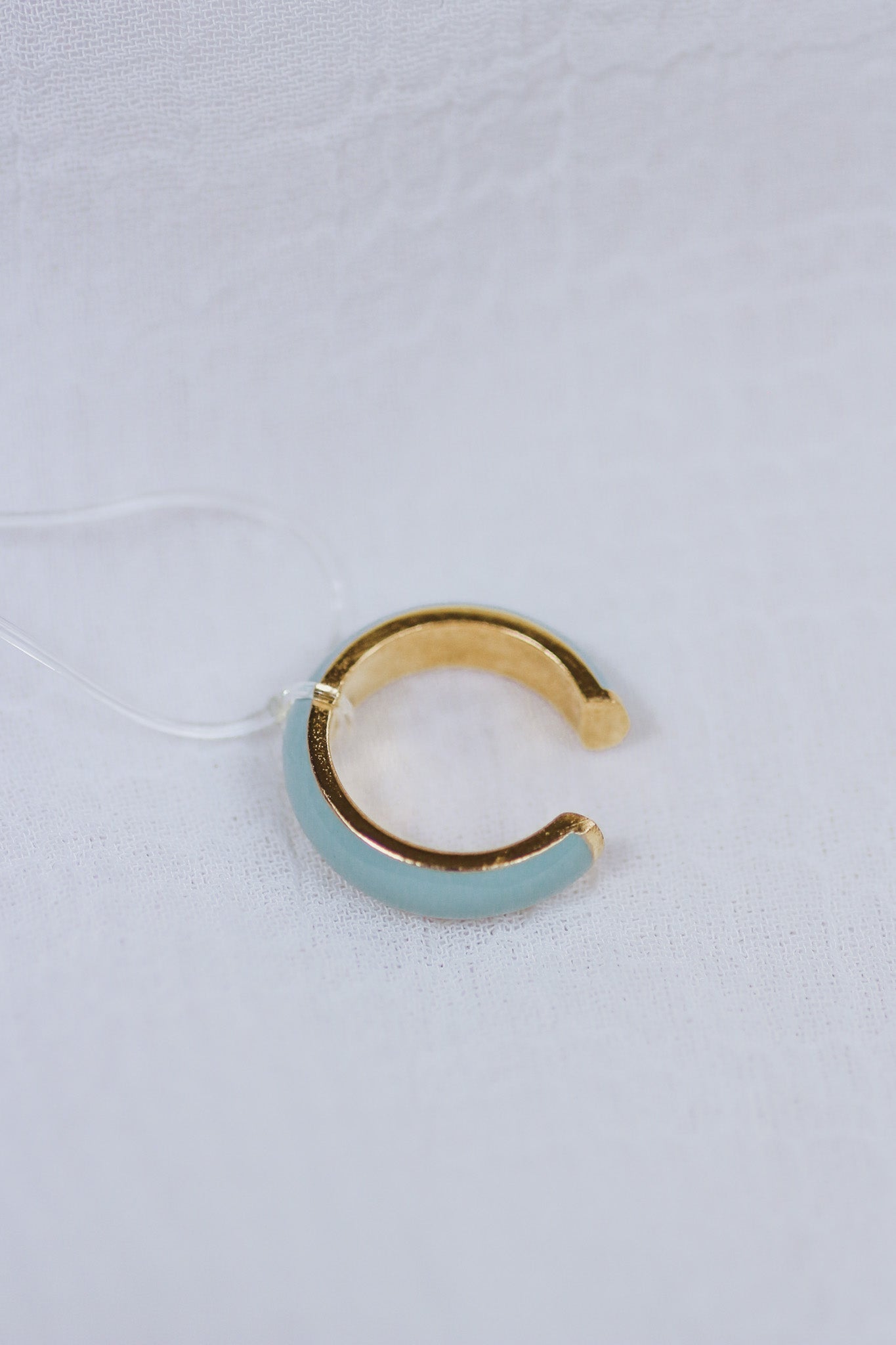 The summer palate has finally approached: in a cuff. Introducing the hand painted pastel colored cuff, intricately tinted within a baby blue hue over a stainless steel foil to be placed right on the helix of the ear. Pair the water-resistant cuff with our newest triple line huggies + the opal huggies to create the trendiest summer ear party this season.