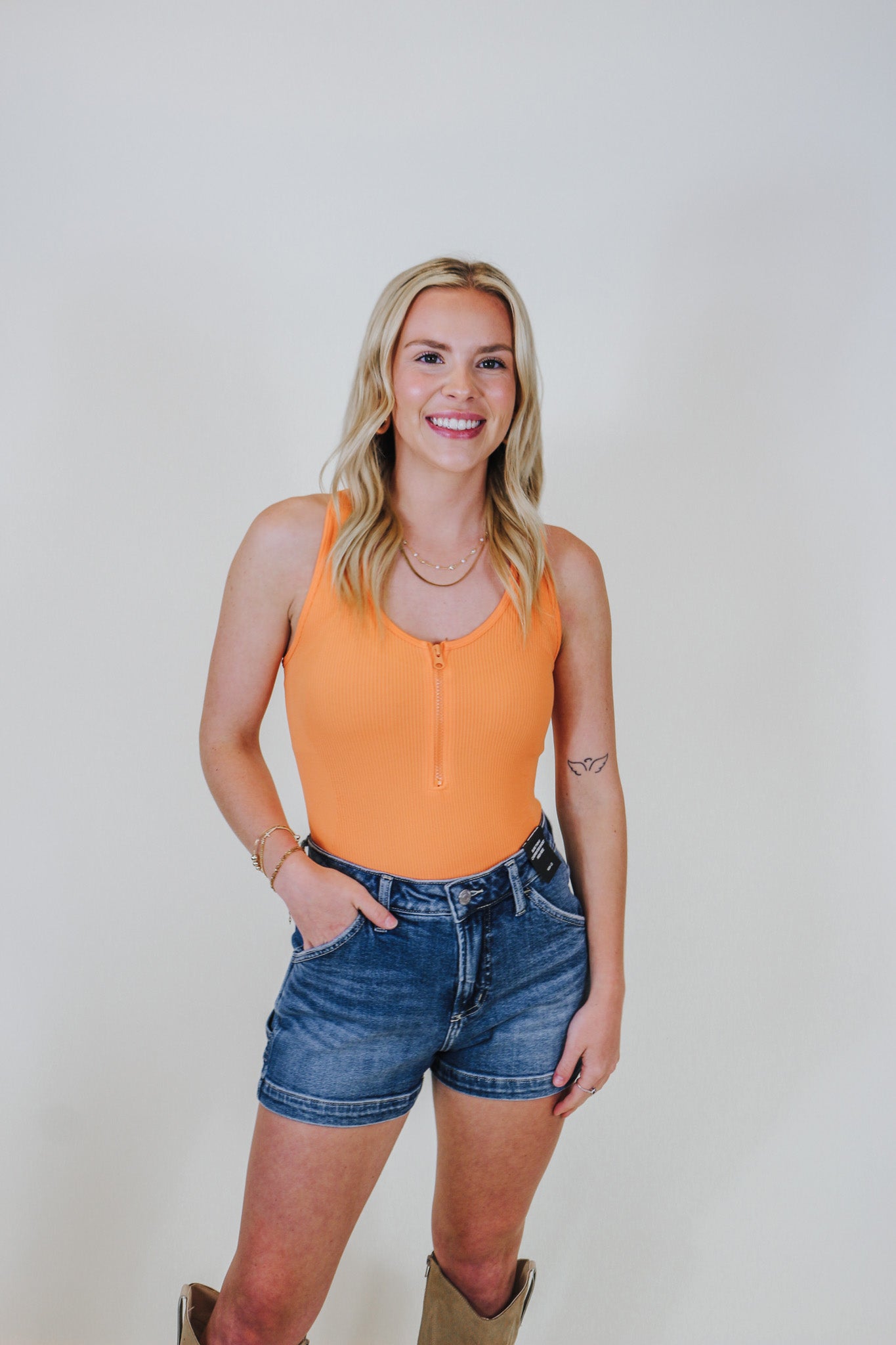 Come Find me Orange Ribbed Half Zip Bodysuit
