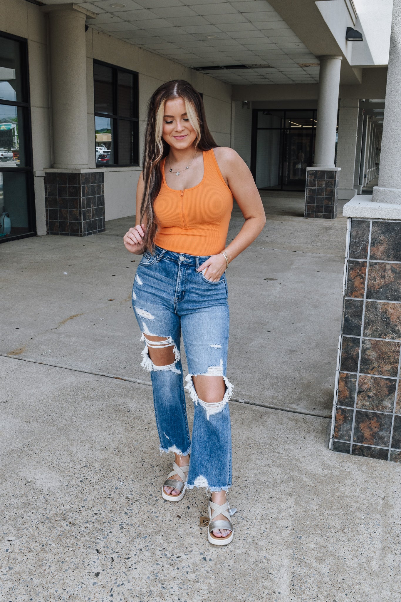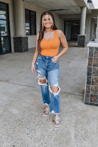 Get ready to stand out in style with our Come Find me Orange Ribbed Half Zip Bodysuit! This playful and unique piece features a vibrant orange color and a half zip design, making it perfect for any fun occasion. The ribbed fabric adds a touch of texture, while the bodysuit style keeps you looking sleek and smooth.
