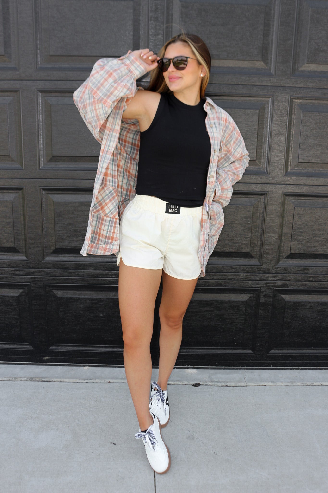 Flirty In Fall Distressed Plaid Flannel Top -2 Colors