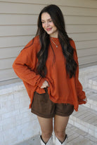 Embrace your boldness in the Feisty Side Of Me Persimmon Sweater. Its vibrant persimmon shade and cozy fit make it the perfect companion for showing off your playful spirit while staying comfortably warm. Ideal for days when you want your outfit to speak as loudly as your attitude.