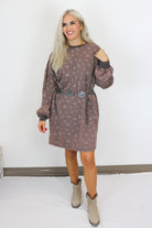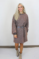 Step into style and comfort with the Wild West Wonders Mocha Brown Dress! Featuring long sleeves for cozy warmth and a mocha brown hue that’s perfect for any season, this dress blends playful charm with practical wearability. Whether you’re headed out for a casual day or a fun night out, its easygoing vibe and flattering fit make it a standout choice for your wardrobe. Embrace the spirit of adventure with every step you take!
