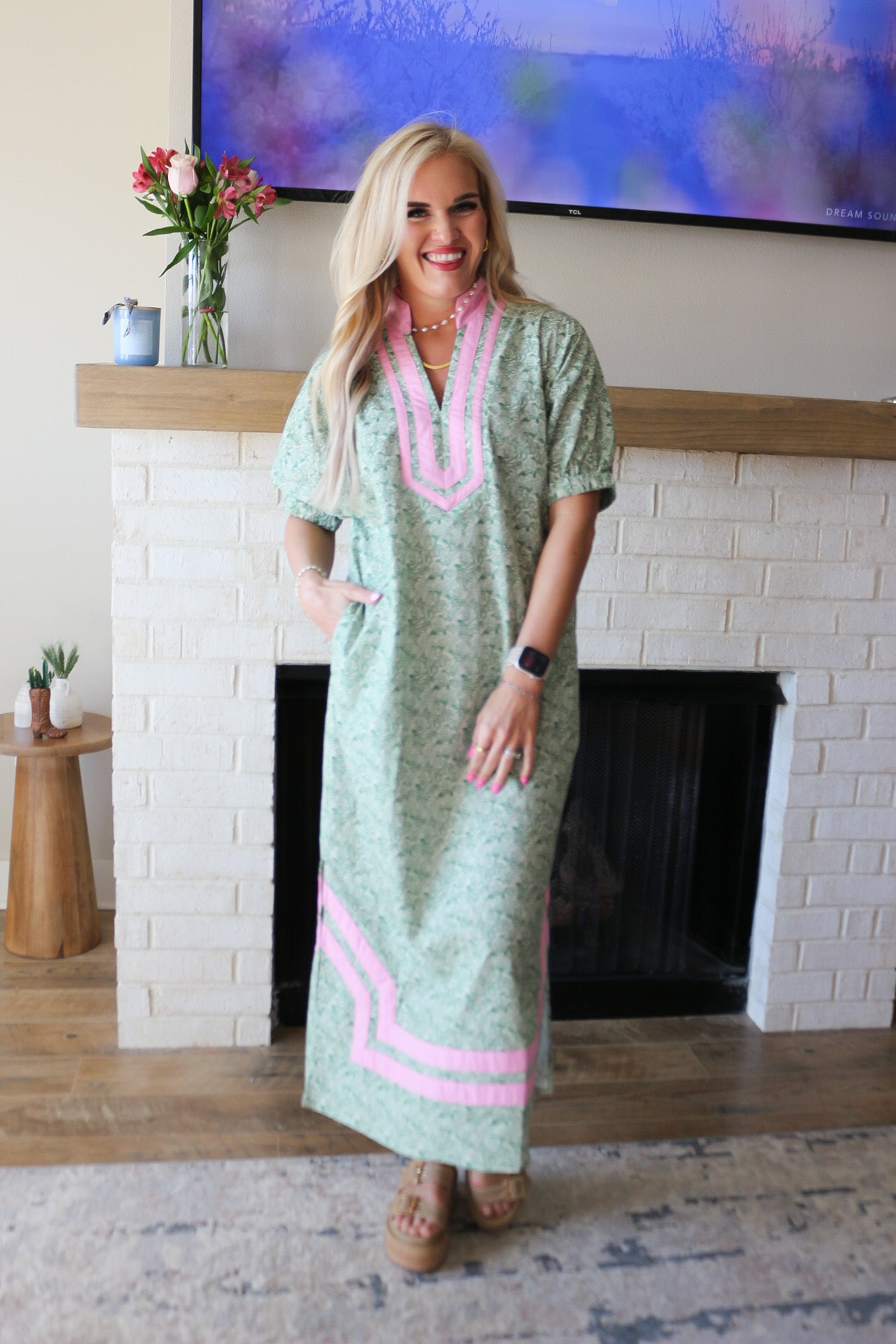 Always On Cue Green Pink Floral Maxi Dress